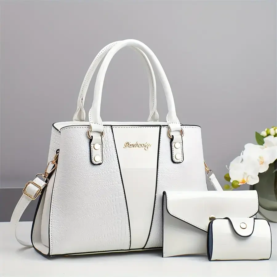 3pcs Elegant PU Handbag Set, Crocodile Pattern Large Capacity Crossbody Bag with Coin Purse and Card Holder, Lightweight Shoulder Bag with Sequins and Zipper Closure
