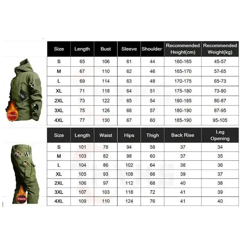 Men's Winter Jacket Tactical Sets FleecedWindproof Waterproof Padding Suits Uniform Pockets Camo