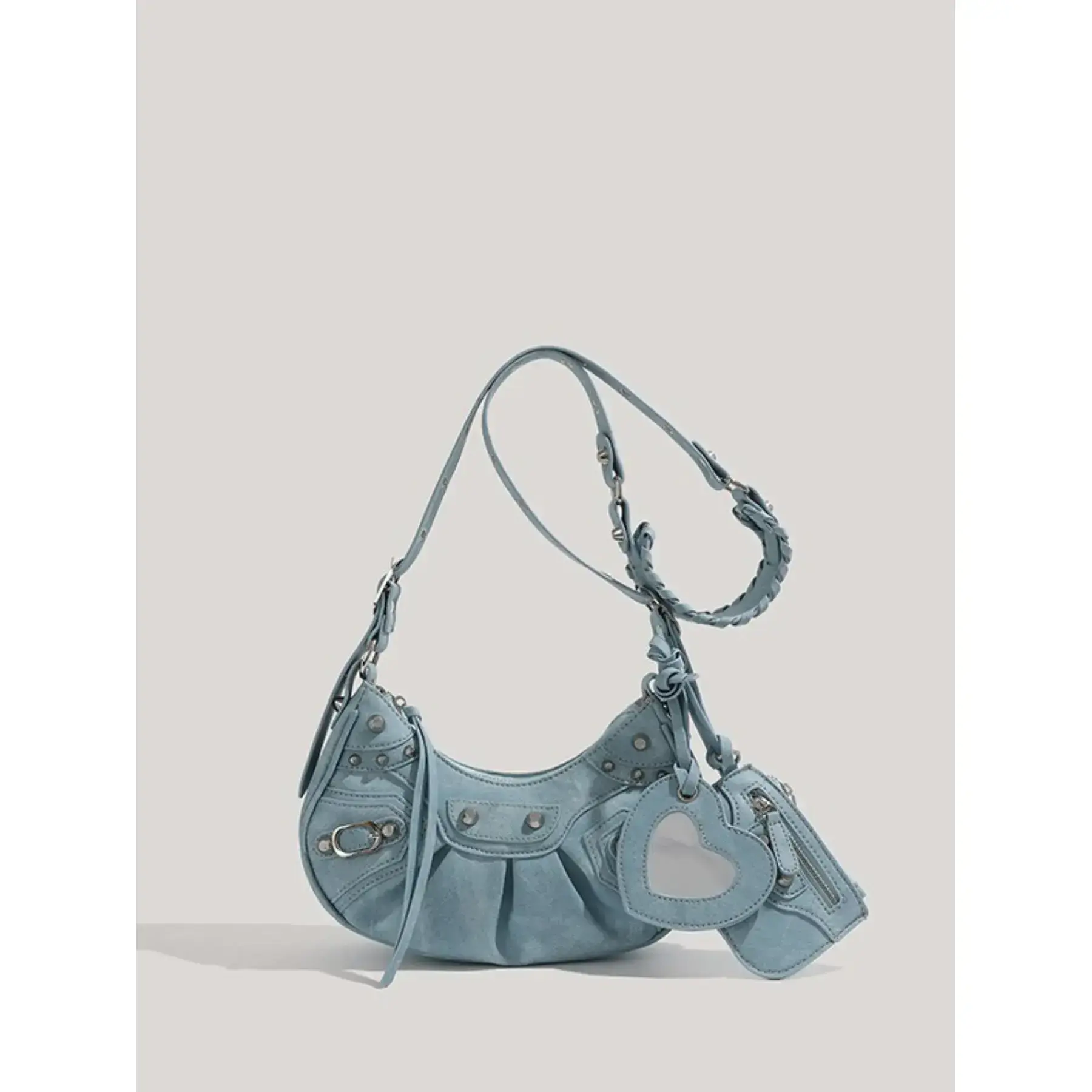 Fashion Rivet Crossbody Bag, Punk Style Half-Moon Design, Includes Small Wallet and Heart Mirror, Multifunctional Shoulder Carry for Women and Girls Hobo Crossbody Bags