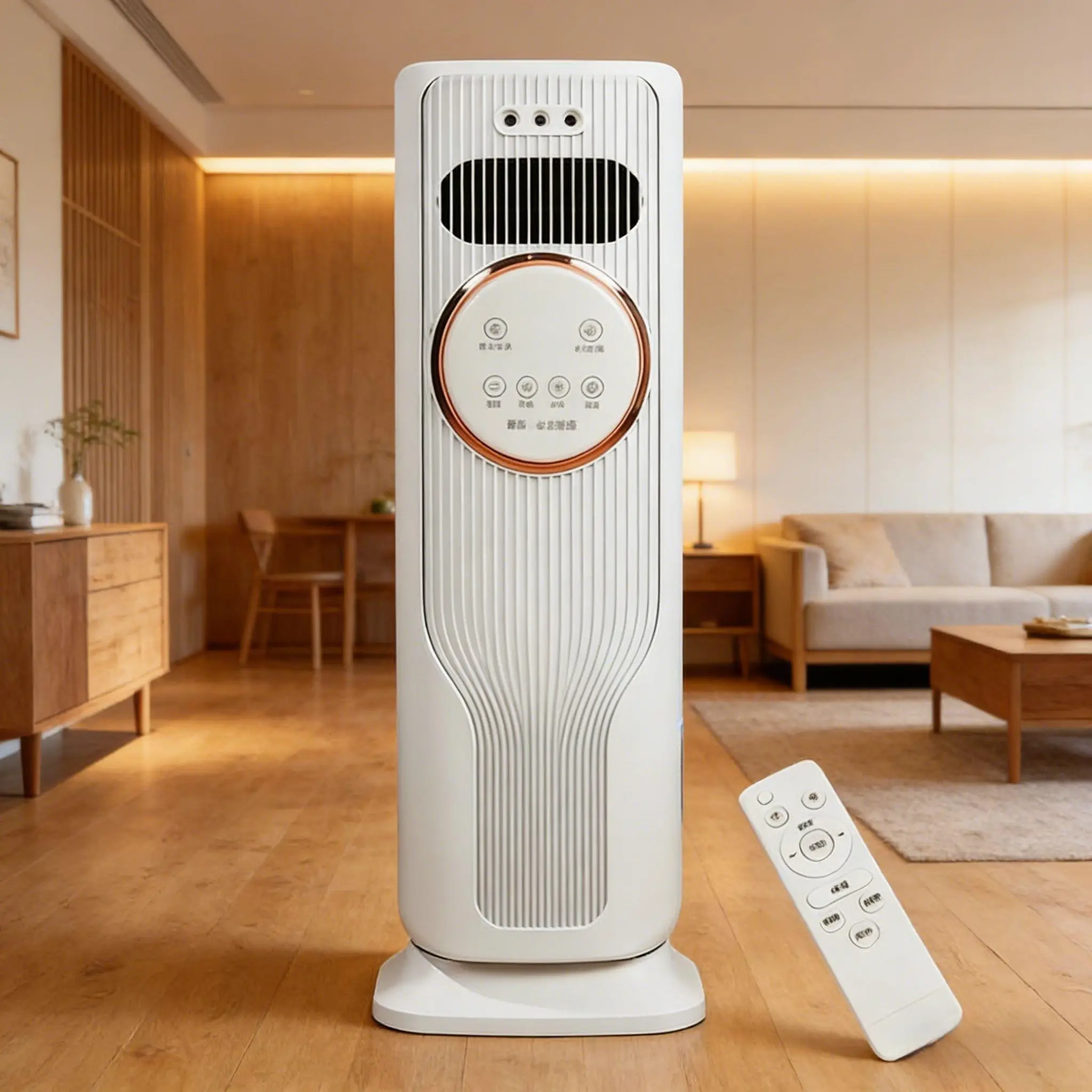 Upgrade your home comfort year-round with our Bladeless 2-in-1 Tower Fan and Heater-your all-in-one solution for beating the heat in summer and staying cozy in winter, designed to fit seamlessly into any home, living room, dorm, or office space.Combining sleek modern aesthetics with powerful, efficient performance, this versatile appliance eliminates the need for separate heating and cooling units, saving you space, money, and hassle while delivering consistent comfort whenever you need it.