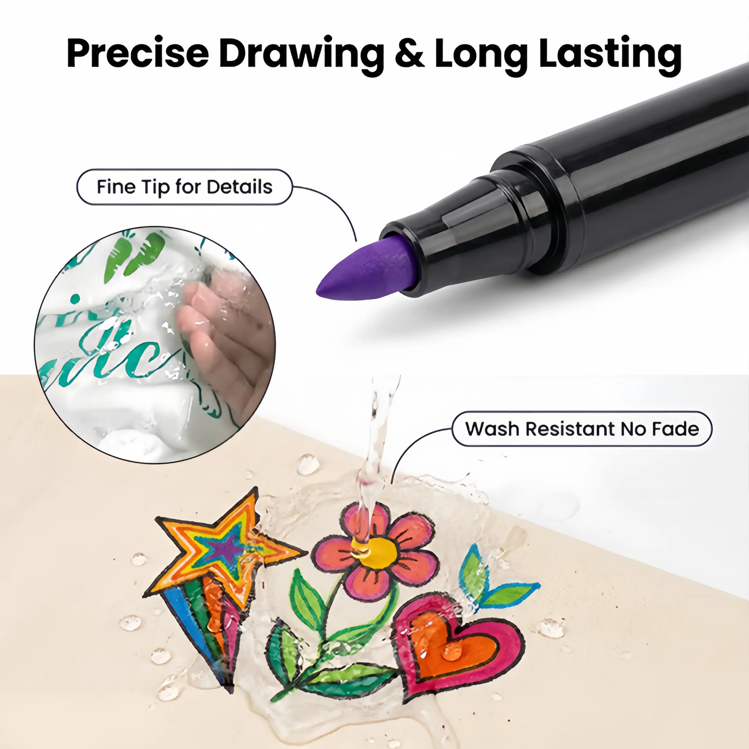 EASY TO USE - Our fine tip pens for fabric dry quickly (24h and no heat required) and their precise tips allow you to draw designs on your plain tote bags, clothes & jackets, sneakers and banners for special occasions