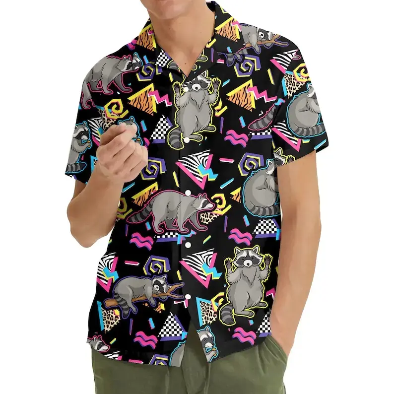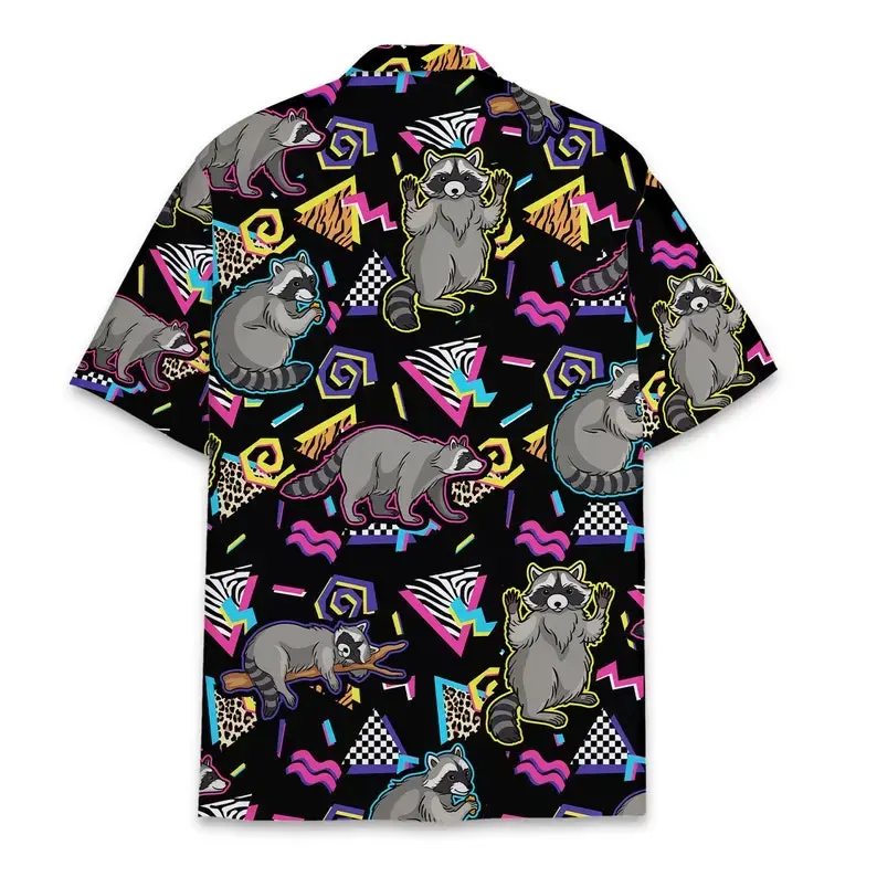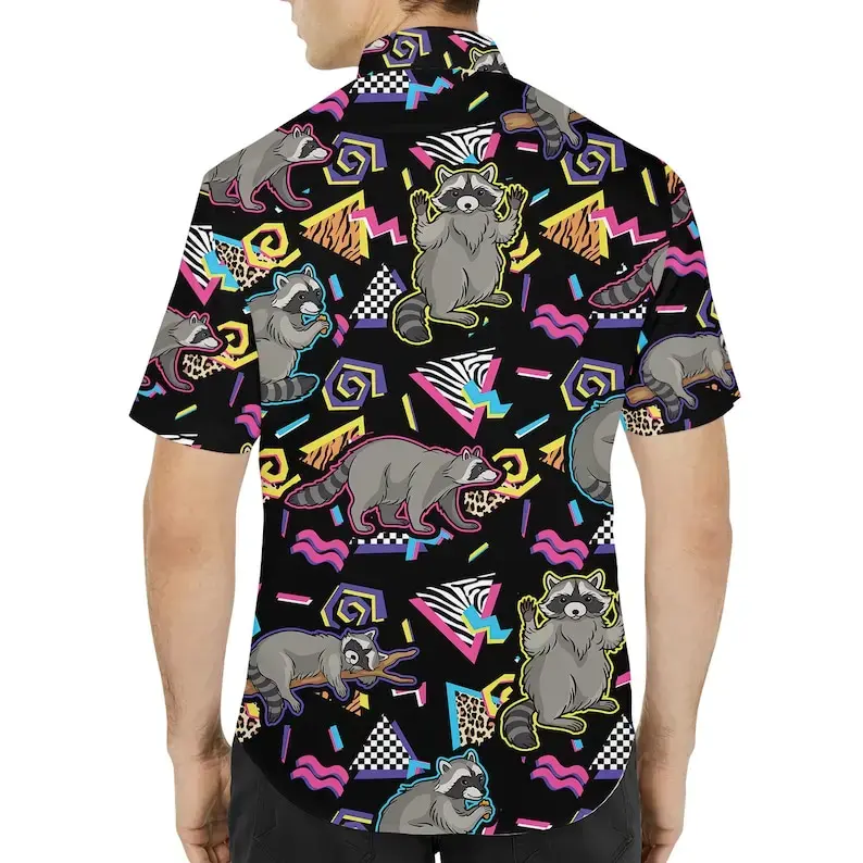 5. Retro Raccoon Hawaiian Shirt Menswear, Funny Aloha Tops Summer Outfit Men, Casual Shortsleeve Classic Tropical Polyester Stylish Streetwear
