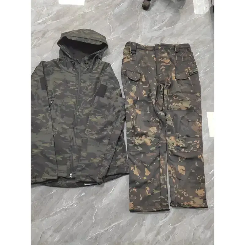 Men's Windproof Fleece-Lined Tactical Jacket & Cargo Pants Set - Multi-Pocket for Hiking & Winter Hoodie Long Sleeve Green Gamis Clothes Tops Suits Fathersdaygift Outdoor