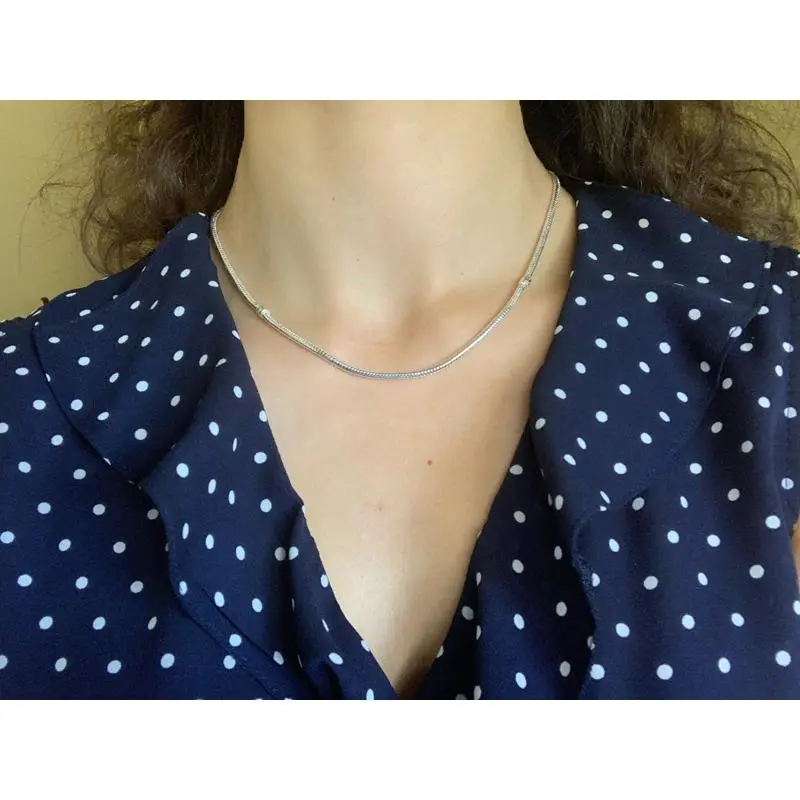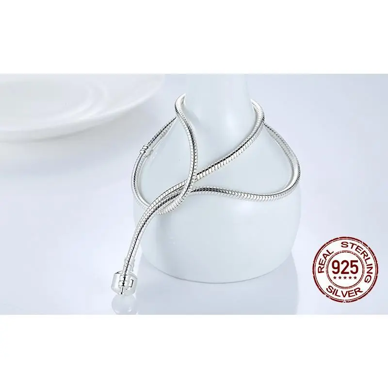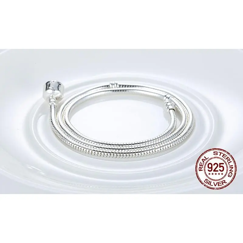 Heart Love 925 Sterlin Silver Snake Chain Necklace Secure Ball Clasp Beads Charms Chocker Necklace For Women Wedding DIY Jewelry