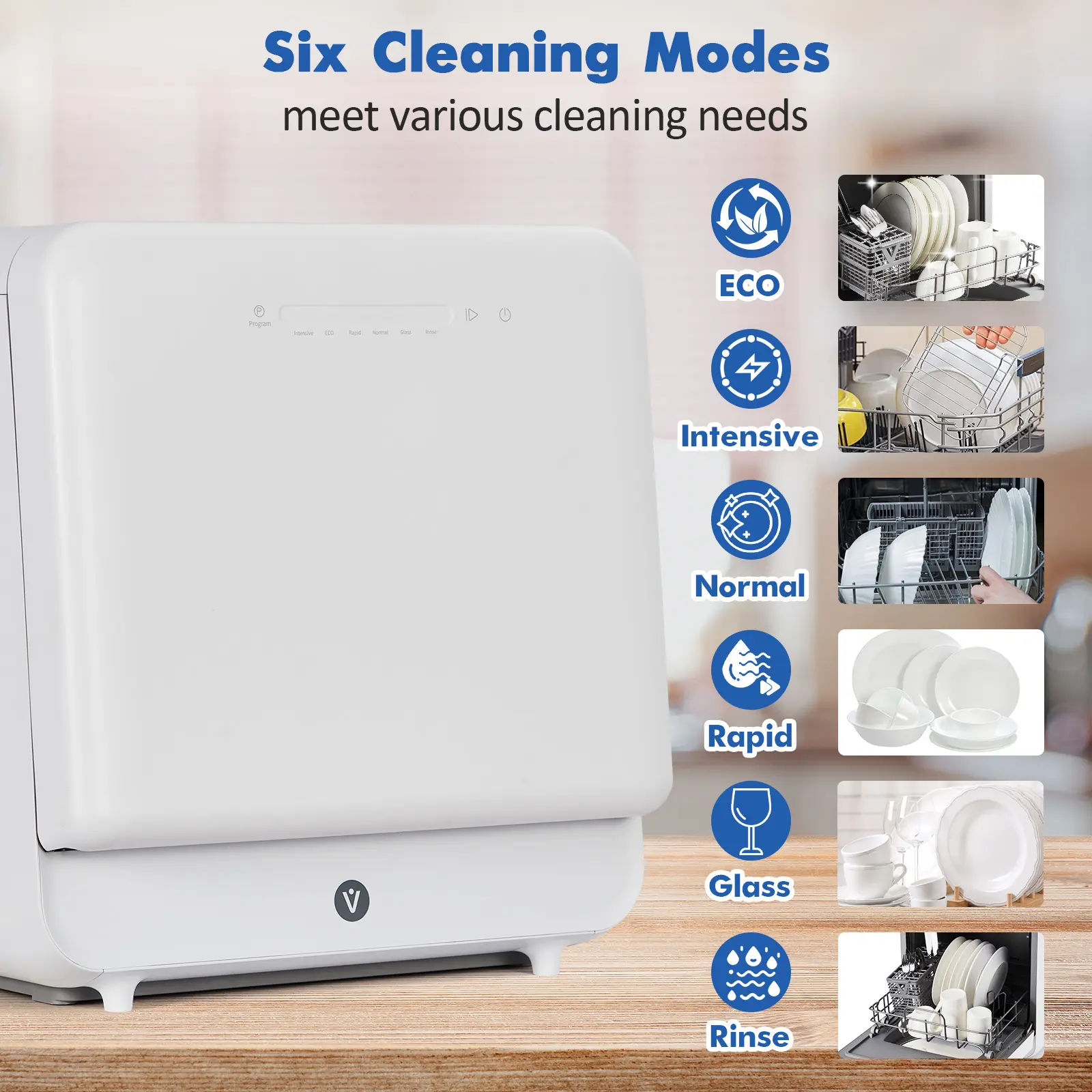 ·Six customizable washing programs for thorough and gentle cleaning