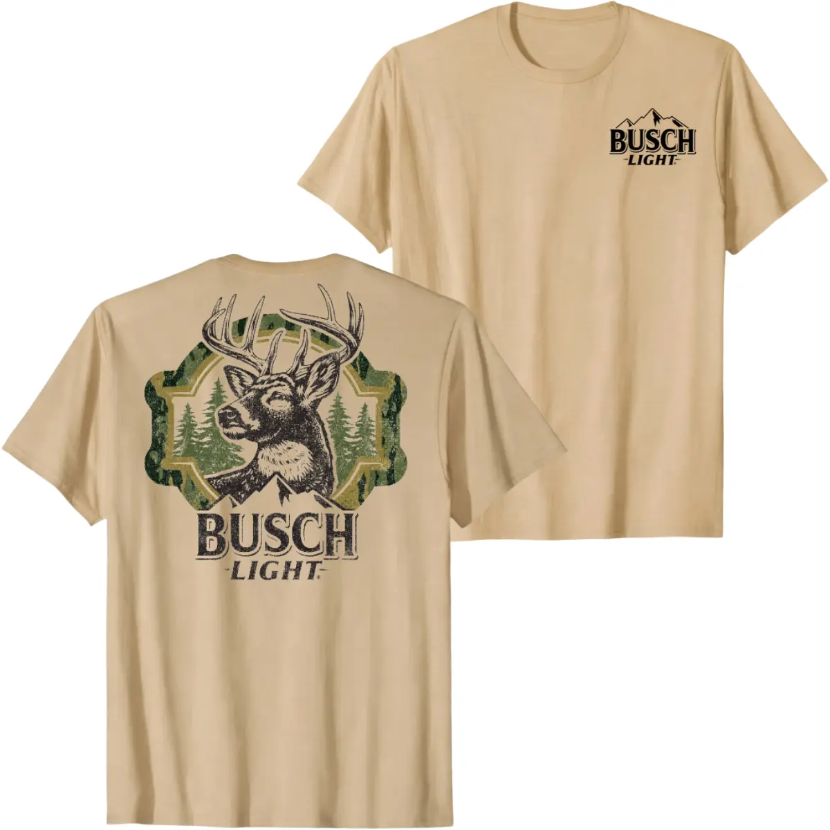 Busch Light Deer Hunting Graphic T-Shirt, Buck Head Forest Back Print Beer Tee for Men Women, Vintage Outdoor Unisex Streetwear Hunting Shirt, Rustic Summer Casual Top