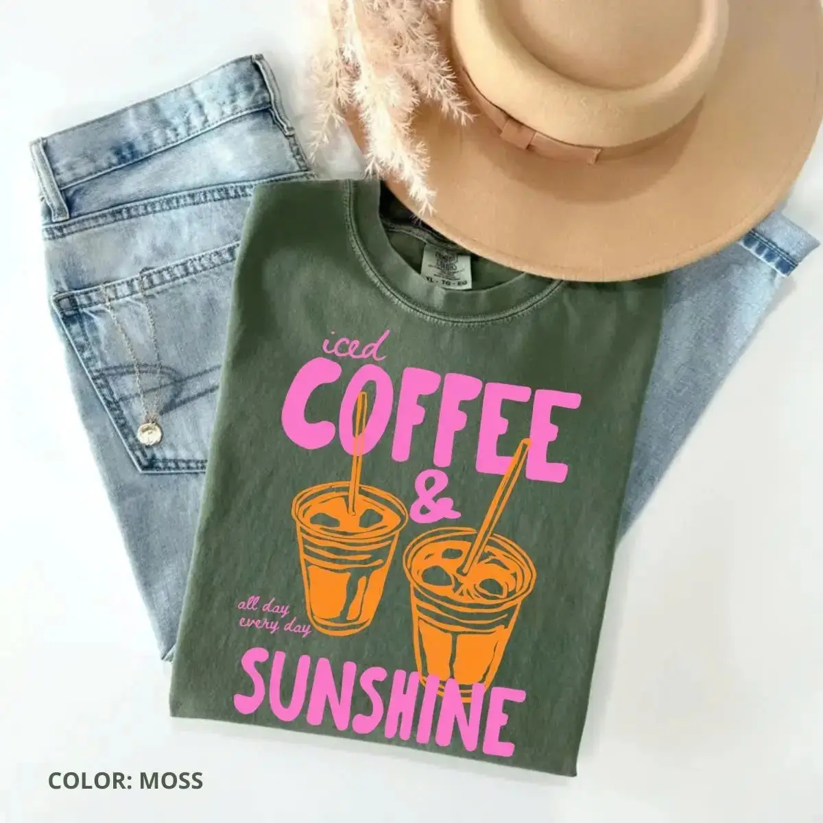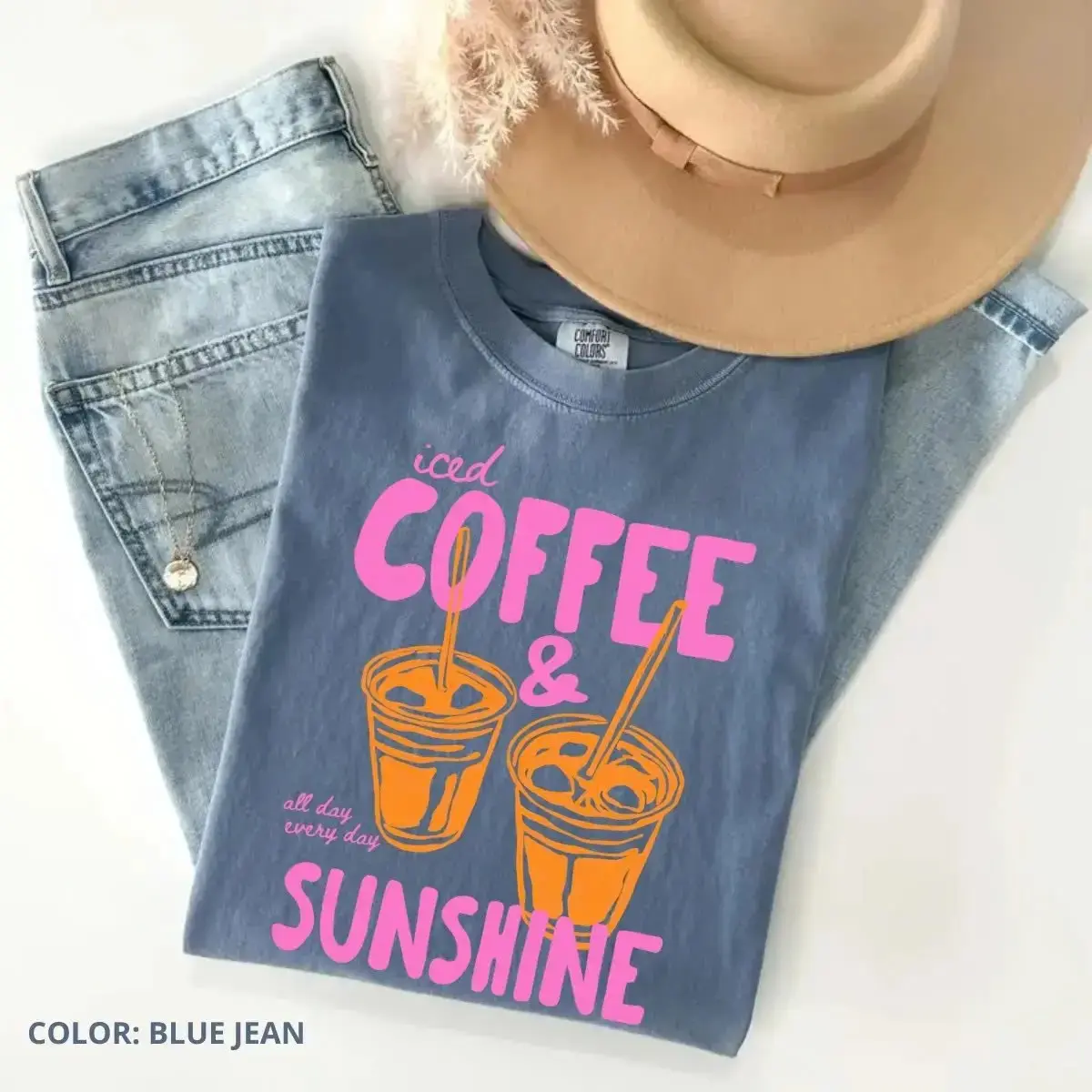 Comfort Colors Iced Coffee And Sunshine Vintage T-shirt Iced Coffee Lover Gifts Summer Tshirt Summer Vibes Coffee Summer Vibes Tee