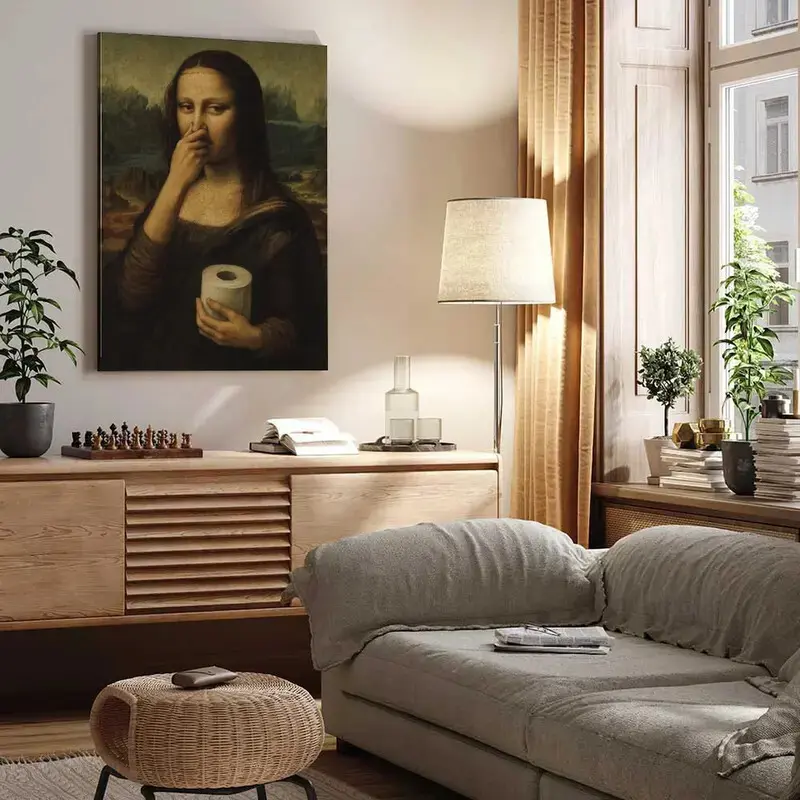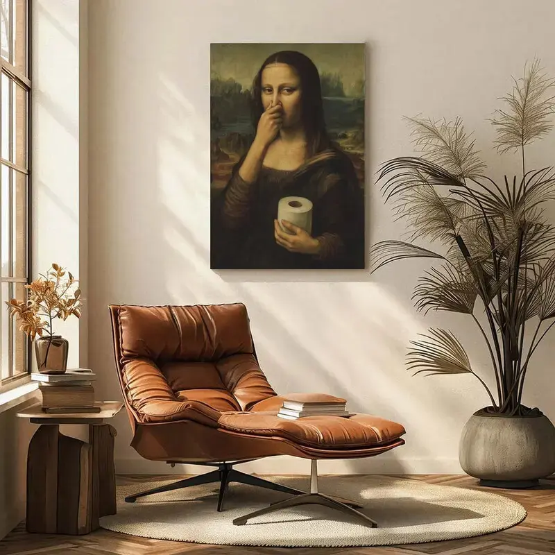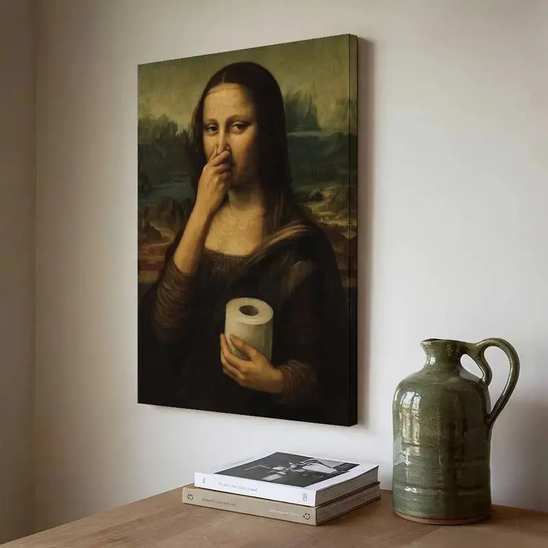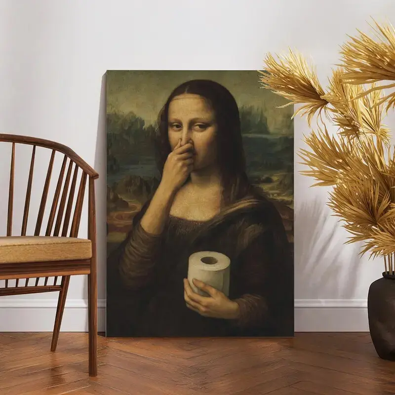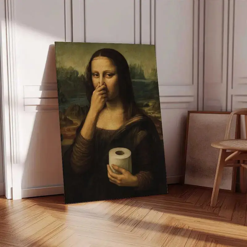 Funny Mona Lisa Bathroom Poster Wall Art