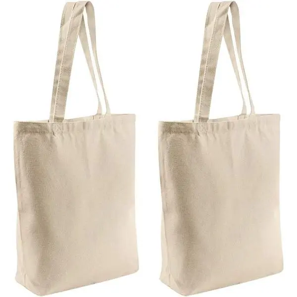 Reusable large canvas tote bags measure 15.7''x15.7''x4.7''. Each bag comes in separate outer packaging to reduce creases. Flat folding for easy storage. Choose from 2 off-white, 2 black, or 1 off-white and 1 black canvas bag. Contact us for any issues. Color deviation may occur due to lighting.