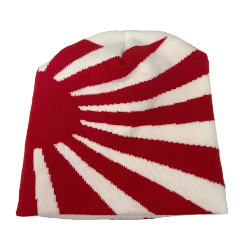 Keywords (SEO):rising sun beanie, red beanie, aesthetic winter hat, streetwear beanie, trendy accessories, cozy knit hat, unique gift ideas, Gen Z fashion, bold beanie, viral beanie