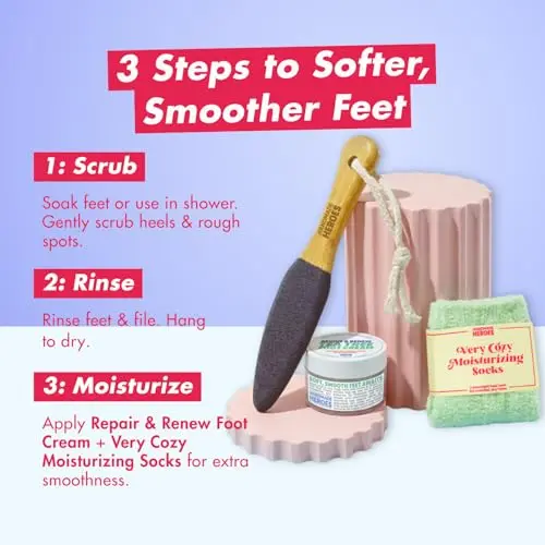 SOFT FEET, ANYTIME - get smooth, refreshed feet at home with this foot scrubber and callus remover. Deep exfoliation yet gentle enough for daily use perfect for maintaining soft healthy feet. For best results, pair with your favorite lotion or foot cream and slip on our Cozy Moisturizing Socks to lock in hydration