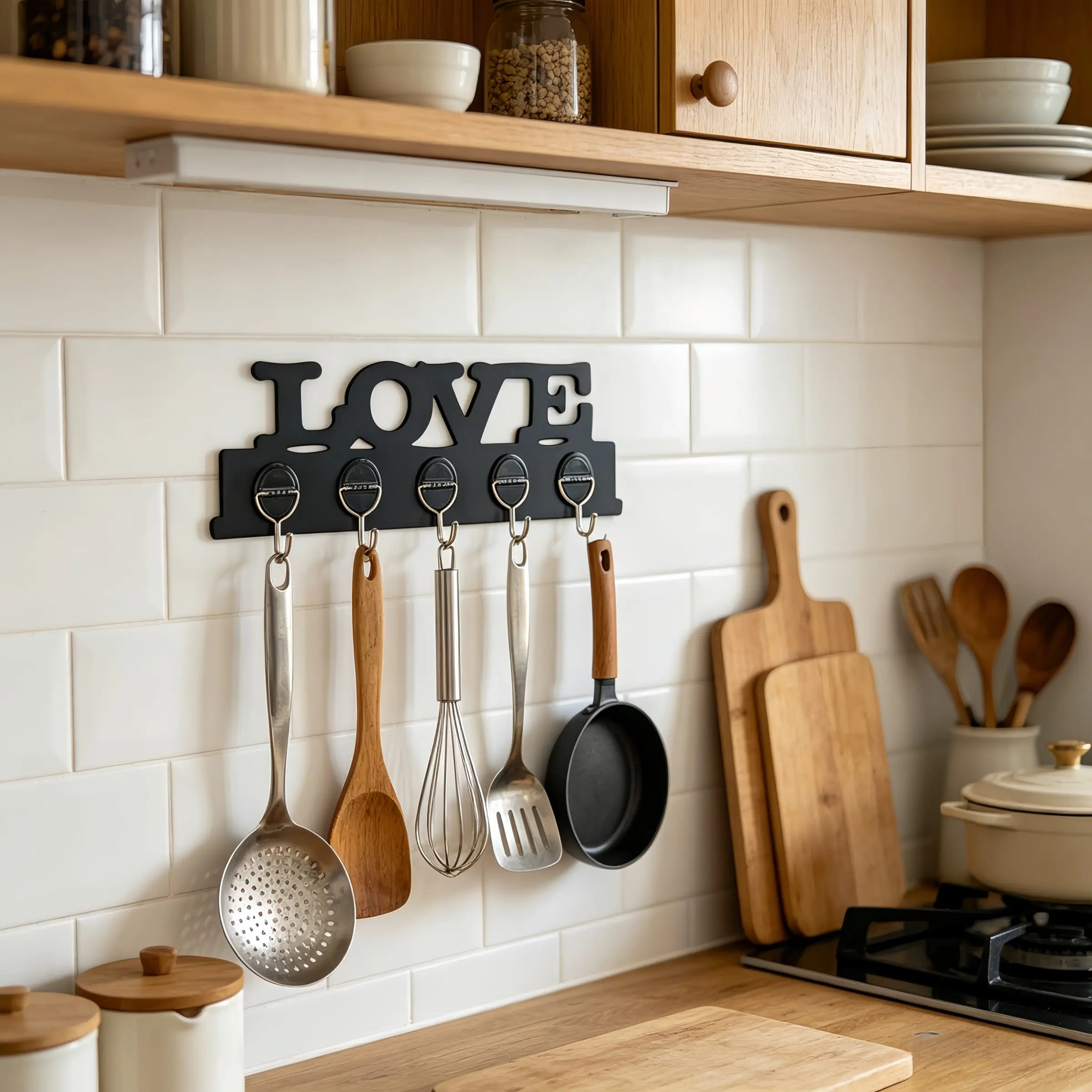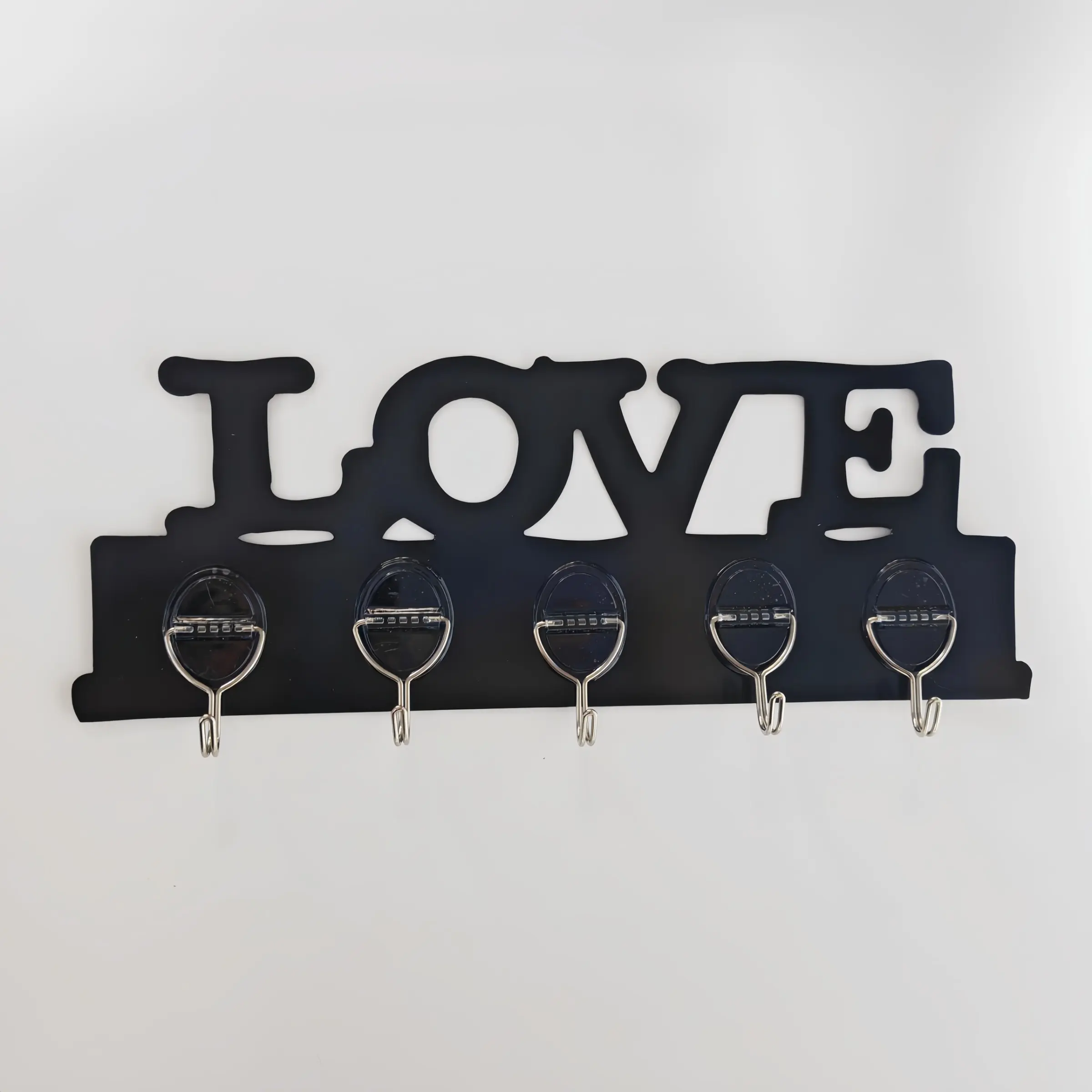 2-Pack Love Graphic Plastic Hook Rack, Wall-Mounted Key Hooks, 5 Strong Hooks, Easy Install with Adhesive Backing, Ideal for Entryway Organization