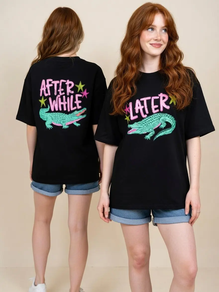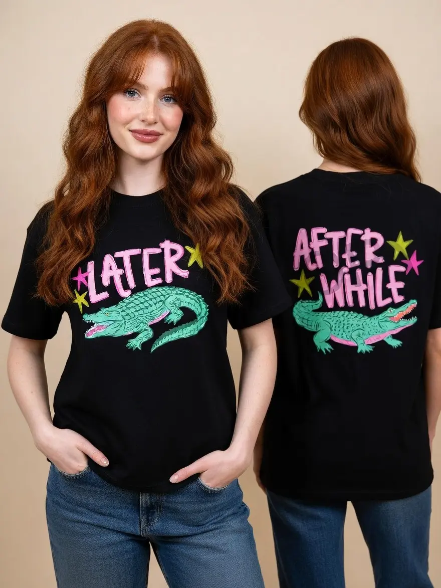 Later Gator Shirt, After While Crocodile Shirt, Funny Graphic Tee, Front Back Print Shirt, Comfort Colors Tee, Trendy Cute Tee Womenswear Casual Fabric Love