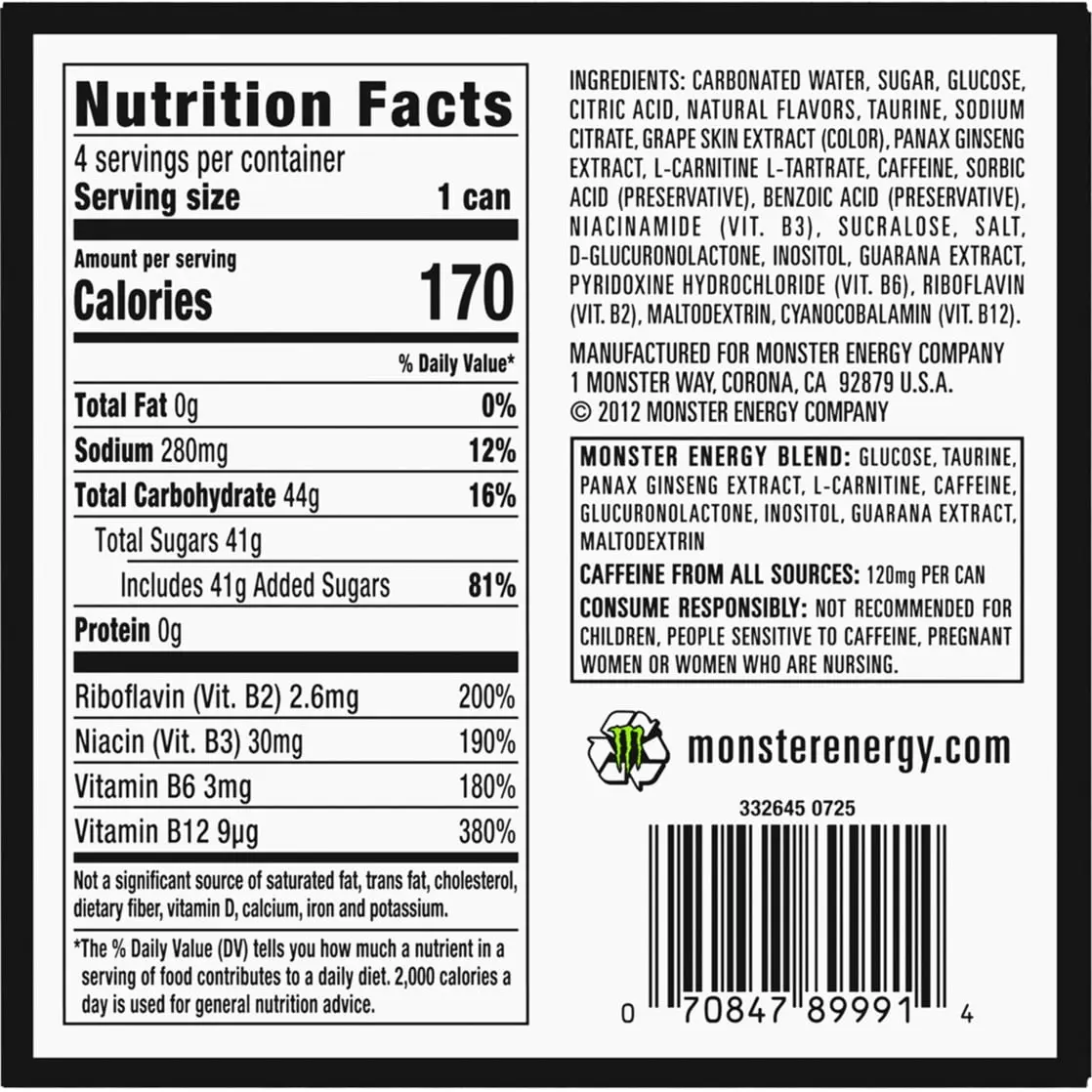 BIG BAD BUZZ | Experience the electrifying power of 160mg of caffeine packed into a "Monster" 16-ounce can. Monster Energy Drink offers more buzz for less when compared to those puny 8.3-ounce Energy Drinks
