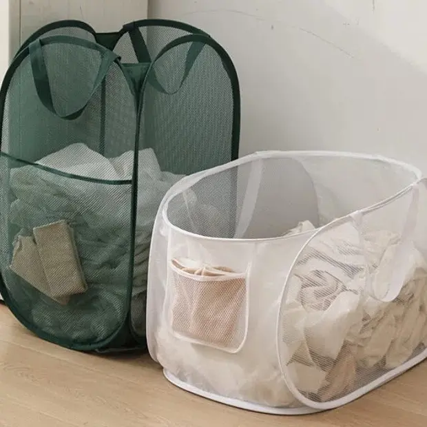 Collapsible 2-Section Mesh Laundry Basket | Sort & Store with Ease