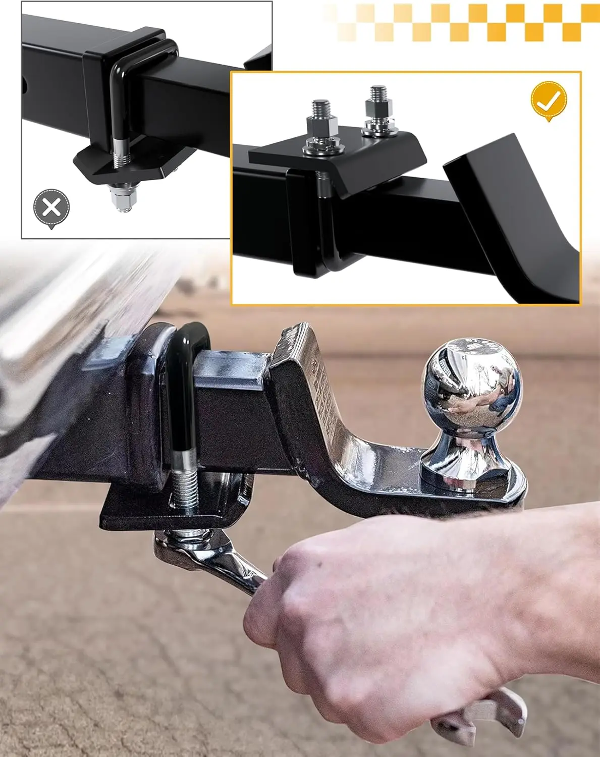 ·Robust and Durable - Crafted from heavy-duty solid steel, our hitch clamp features a galvanized powder-coated U-bolt with a rubber tube, effectively reducing the risk of rust, scratches, and corrosion in any weather condition, ensuring a longer lifespan for your equipment