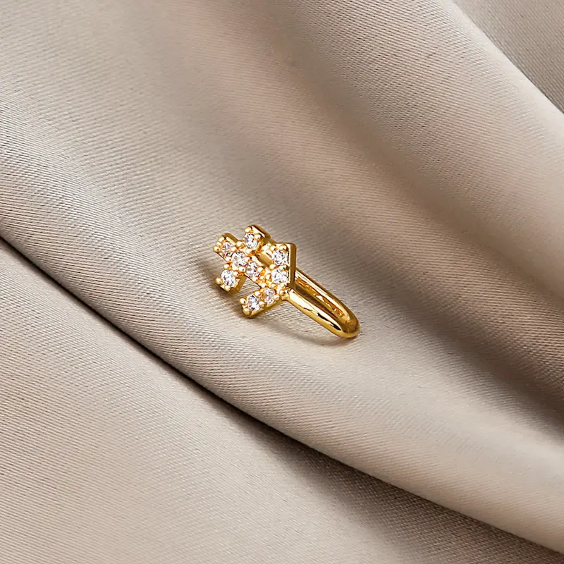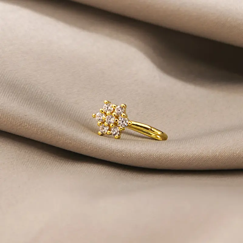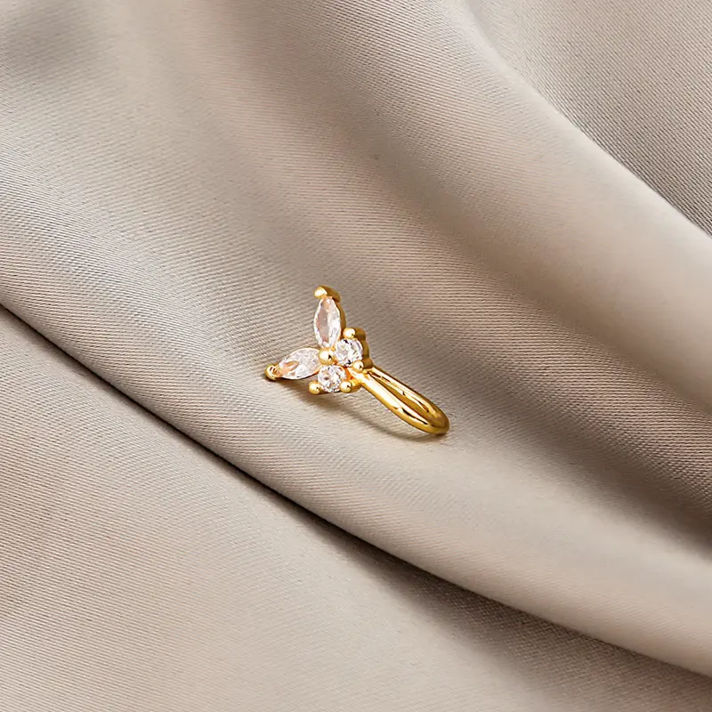 New star-shaped nose ring, simple U-shaped copper micro-inlaid non-piercing nose stud, trendy accessory