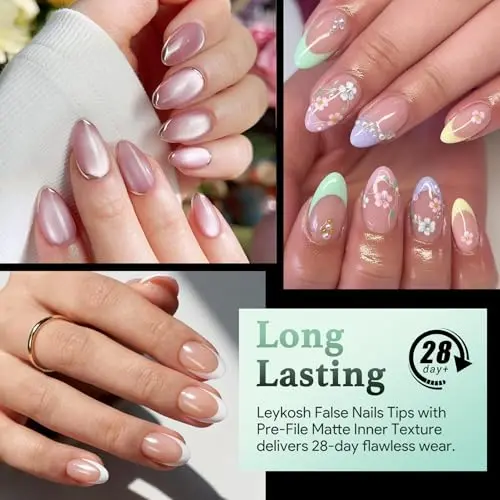 [VERSATILE & GIFT READY] Compatible with gel polish, dip powder, and acrylic systems, these matte almond tips are a versatile canvas for your creativity. Whether it is for a holiday, wedding, or a thoughtful gift for daughters and friends, LEYKOSH provides the ultimate kit for sophisticated, minimalist nail art.