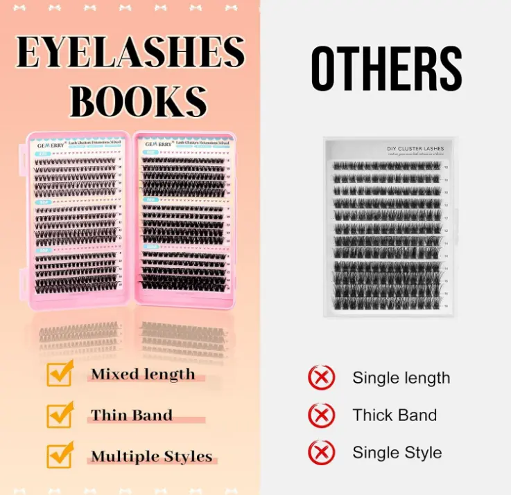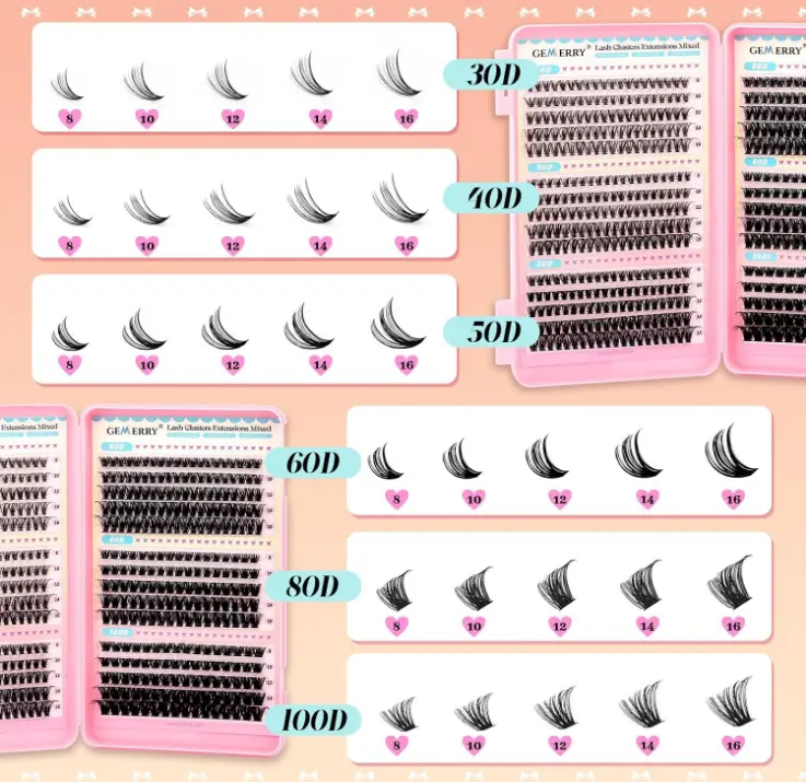 ·【Rich Volume, Multiple Styles】GEMERRY Eyelash Kit includes 6 different volume styles: 30D, 40D, 50D, 60D, 80D, and 100D cluster lashes. With this generous assortment, you can effortlessly create diverse looks—from natural everyday makeup to stunning party glam. Perfect for both casual wear and special occasions, this kit meets all your lash needs