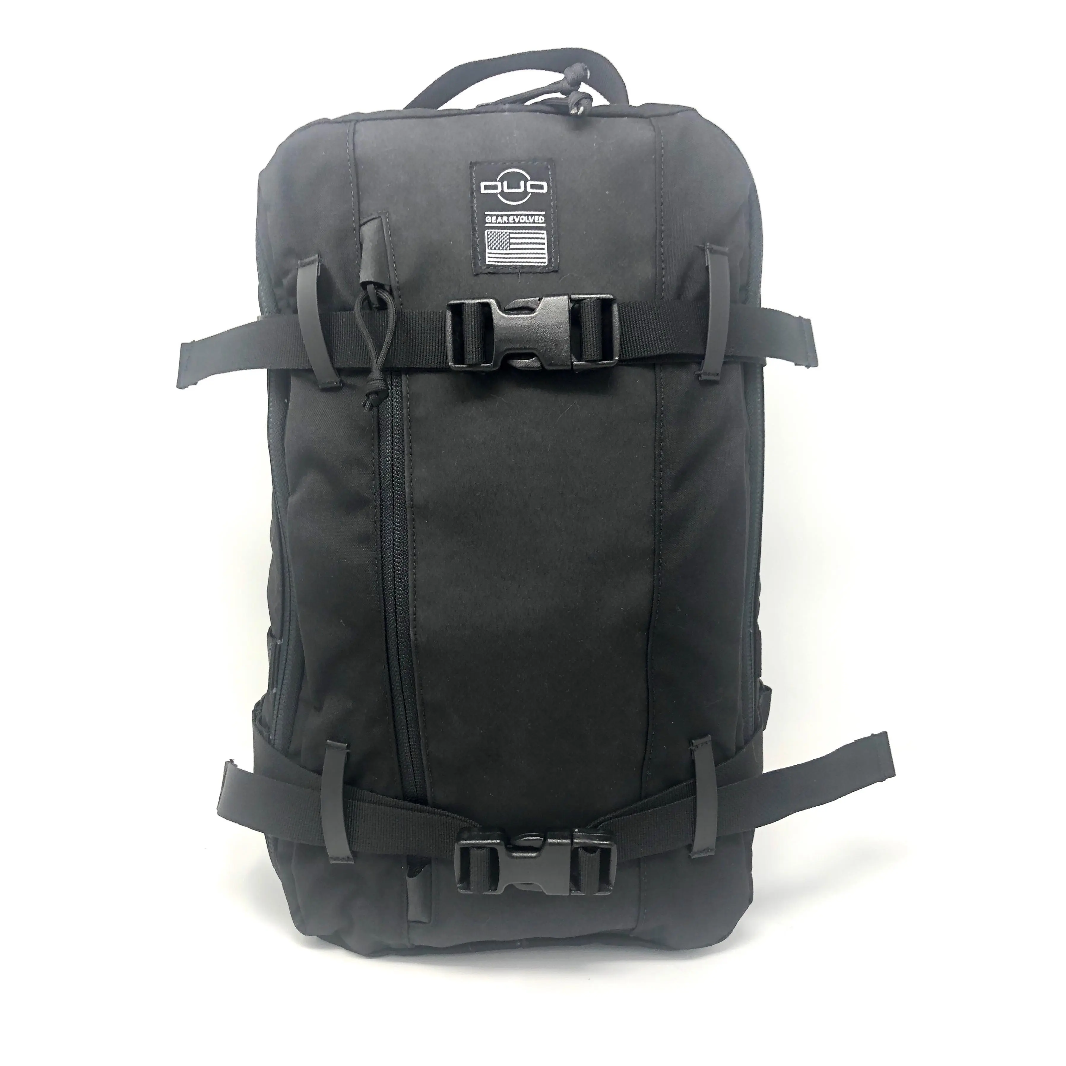 Two main compartments - one for you and the other for your pup. We added lots of molle to allow for added storage - look for our cell phone and treat pouches to attach to the shoulder straps or side Molle. The G hook compatible compression straps make it easy to secure gear to the exterior and can also be configured as a hipbelt.