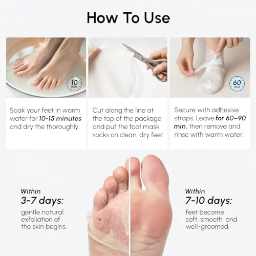 Safe Dead Skin & Callus Remover — Designed for comfortable use, these feet masks gently peel away rough layers without harsh scrubbing. The foot mask peel or exfoliante para pies works gradually to reveal softer, cleaner skin cracked heel repair.