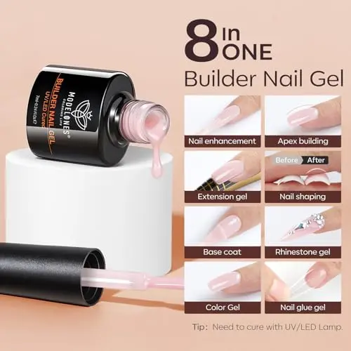 30 Days No Peel-Off & No Bubbles: Modelones nail thickening builder nail gel is made of professional formula, which is adjusted after 72 tests. Say Goodbye to Air-bubble and Peel-off problems. High durability clear gel builder can stay last longer and brings you natural, strong, flexible, and feather-light nails. Long-lasting for 30+ days with with proper application