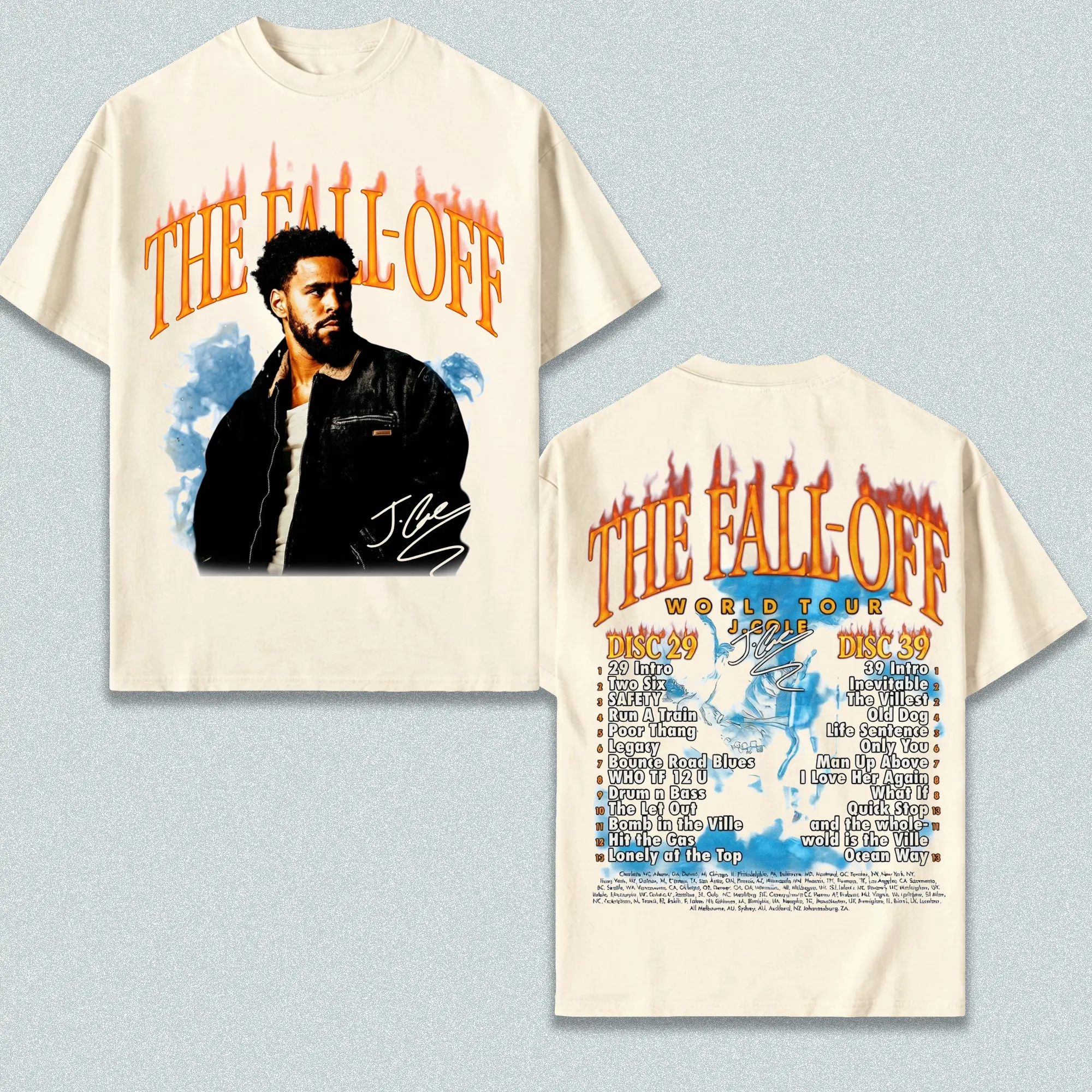 J. Cole - The Fall-Off Tour Graphic For Dreamville High-quality, Soft Cotton T-Shirt, Disc 29, Disc 39 Hip-Hop Shirt, The Fall-Off Album Jermaine Lamar Cole Fan Graphic Tee, Cole World Music Fan Merch Shirt