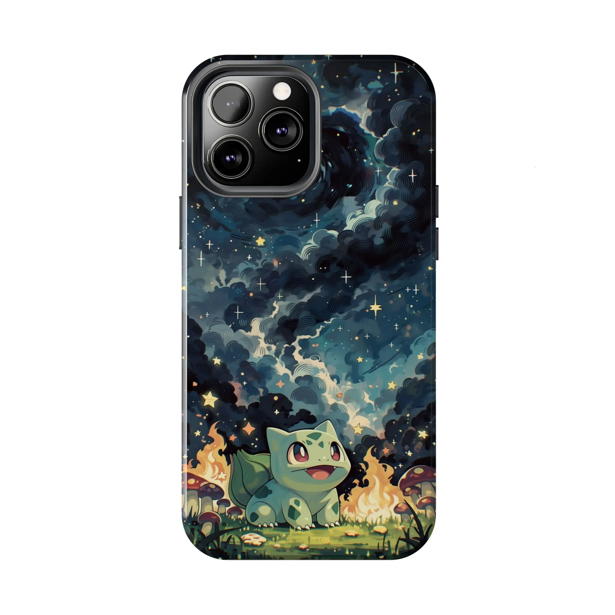 Illuminate your device with the magical charm of this Bulbasaur "Pokémon" themed case. Featuring a stunning artistic interpretation of Bulbasaur sitting under a mesmerizing night sky filled with swirling galaxy clouds, twinkling stars, and glowing mushrooms. This "Starry Night" aesthetic blends the cuteness of everyone’s favorite grass-type starter with a deep, mystical atmosphere, making it a standout piece for any Pokémon fan who loves a touch of fantasy.
