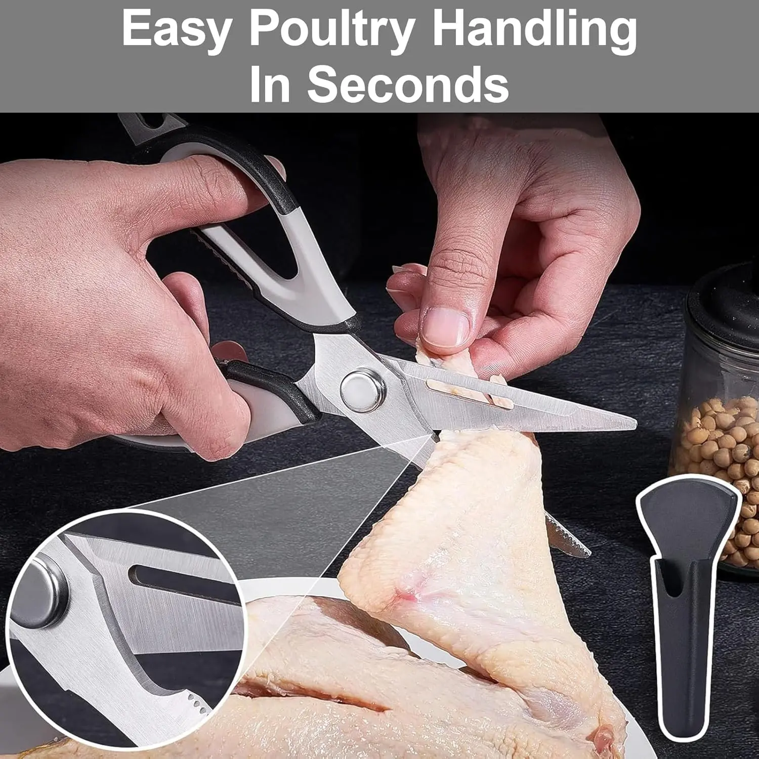 Stainless Steel Kitchen Scissors – Multi-Purpose Shears with Detachable Design, Comfortable Grip, 8.8 Inches, Ideal for Everyday Use,Universal Scissors for Office, Sewing, Fabric, Home, Craft and School Supplies - Suitable for Right/Left Hand
