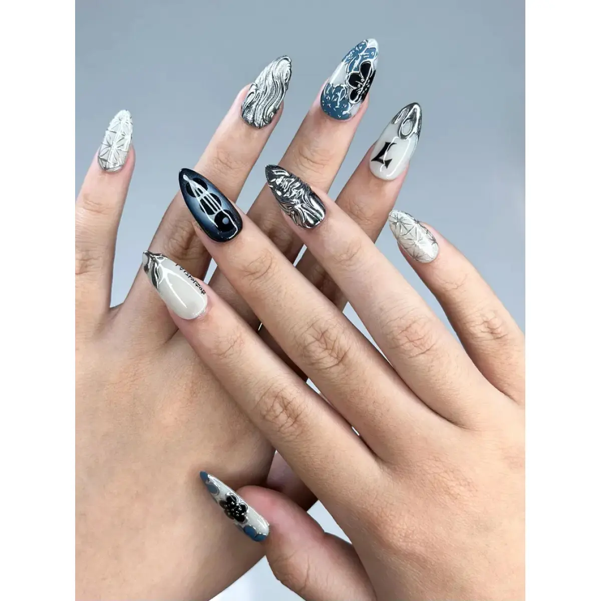 Elevate your "fandom armor" with our Kpop Inspired Indigo Voyage Press-on Nails.This isn't just a set of nails; it’s a wearable masterpiece designed for those who find their soul in the poetic rhythm of the latest musical era.Each nail acts as a miniature canvas, paying tribute to the resilience, art, and profound journey of the Seven Spirits.Whether you are attending a sold-out concert, a cozy cup sleeve event, or simply want to carry the "Indigo" aesthetic in your daily life, these nails are your perfect symbolic companion.
