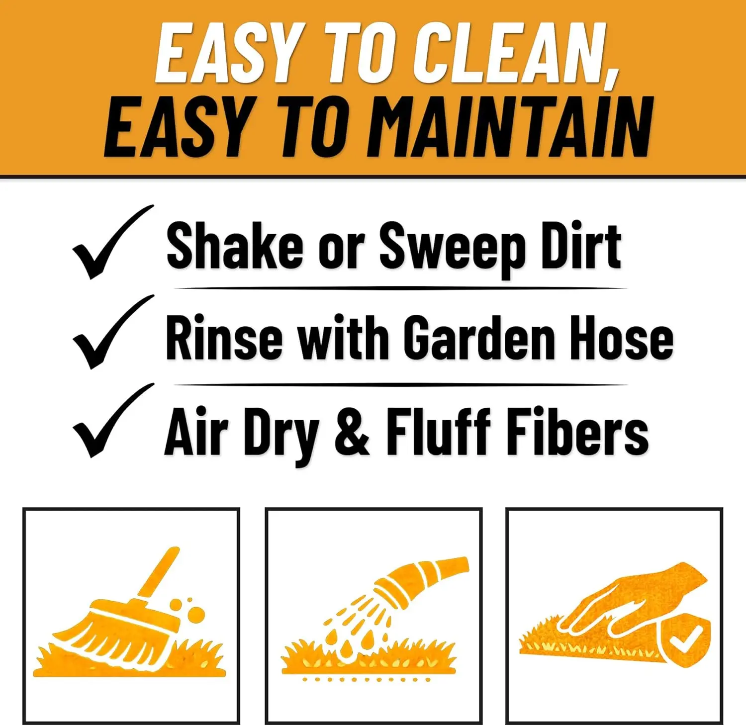 ·[EASY TO CLEAN AND MAINTAIN]: Low-maintenance design eliminates the need for mowing, watering, or seasonal upkeep, with simple cleaning using a garden hose.