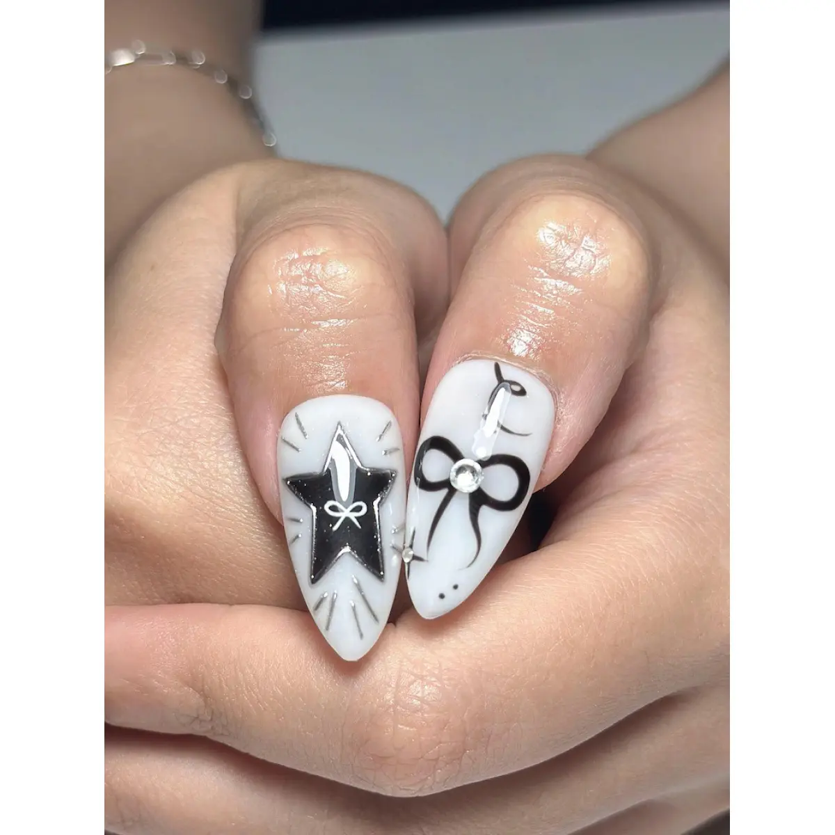 Inspired by the visual codes of his boundary-pushing solo work, this design is a high-contrast masterpiece.We have curated a dramatic blend of Midnight Black and Crisp White, accented by hand-painted Y2K Stars, Gothic Musical Notes, and delicate Bows.