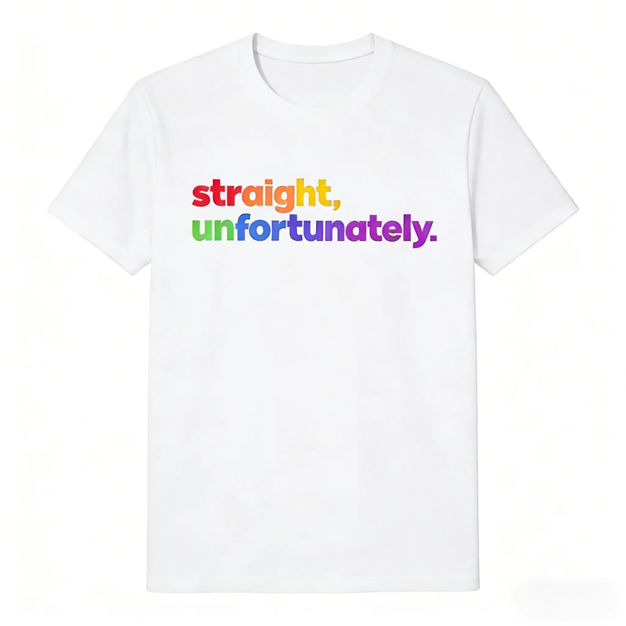 Plus size unisex, couple's T-shirt, Straight Unfortunately, Rainbow Pride Ally Summer Casual Shortsleeve T-Shirt