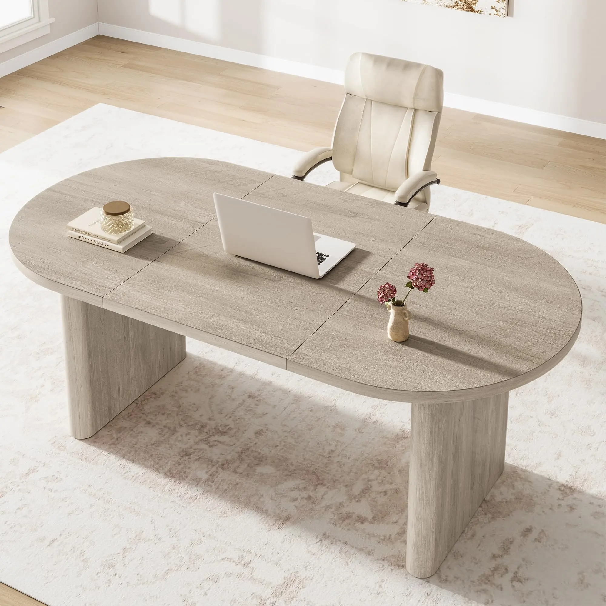 Garvee Large 70.8'' Oval Dining Table for 6-8 – Modern Farmhouse Style with Sturdy Wooden Double Pedestal and Water-Resistant Tabletop – Perfect for Home, Office, Kitchen – Gray-1800