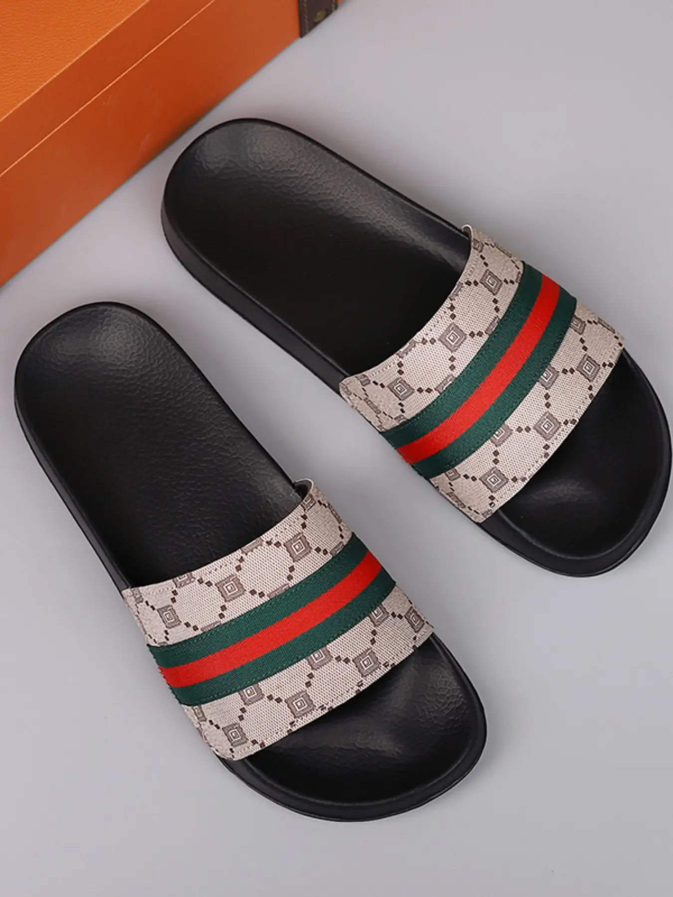 Trendy brand slippers for men to wear outside in summer, anti-slip and wear-resistant, outdoor casual beach cooling slippers, home bathroom bathing one-line slippers