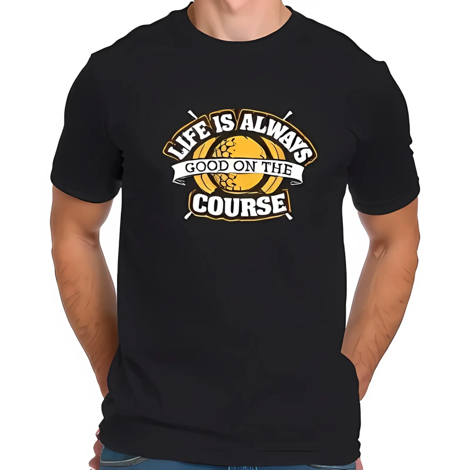 Cotton Short Sleeve T-Shirt With Golf Ball - - " Life Is Always Good-All-Cotton