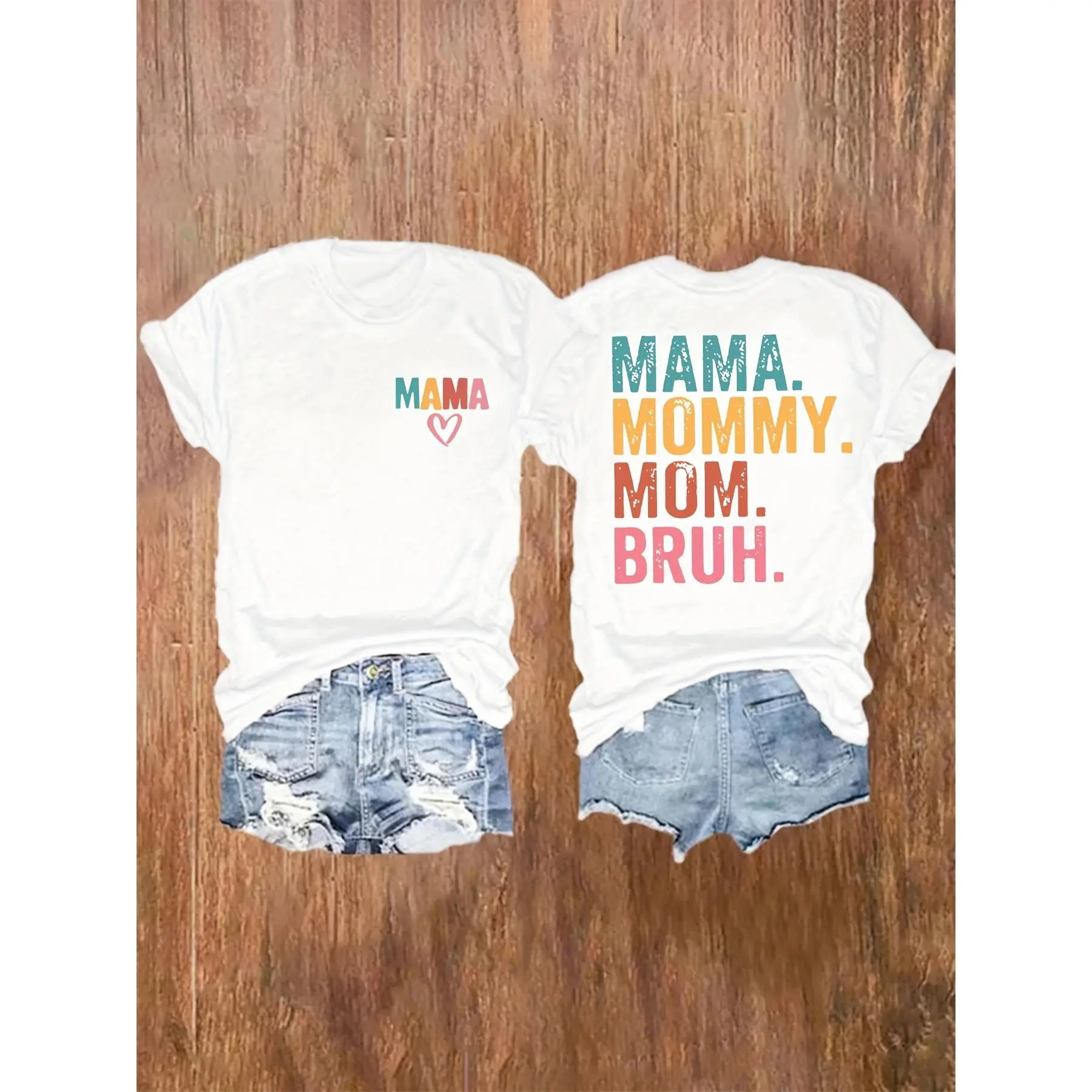 Plus-size T-shirt, unisex T-shirt,[Casual Crew Neck] Mama' Print Short Sleeve T-Shirt for Women | Polyester Blend | Casual Crew Neck Top | Spring & Summer | Easy Care..