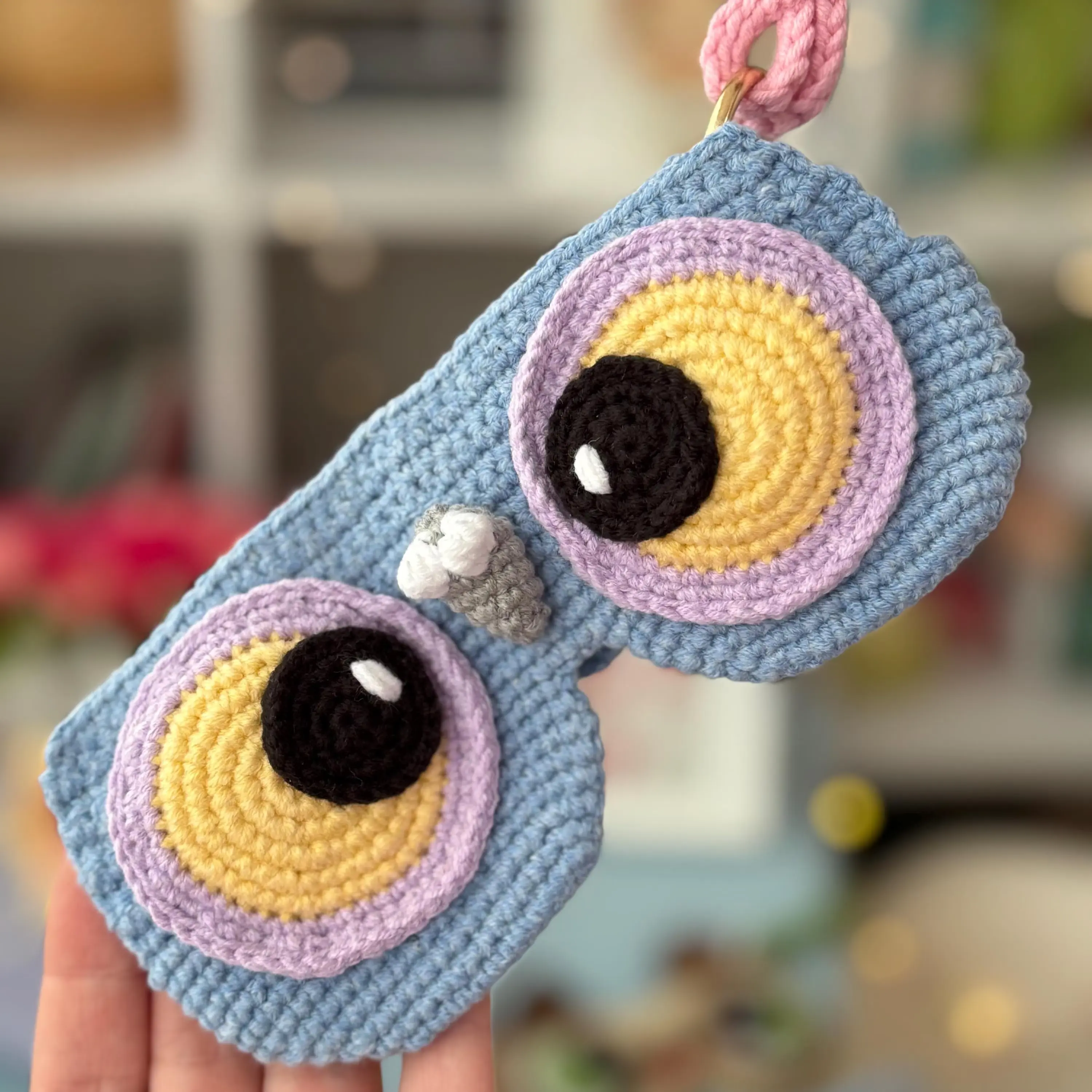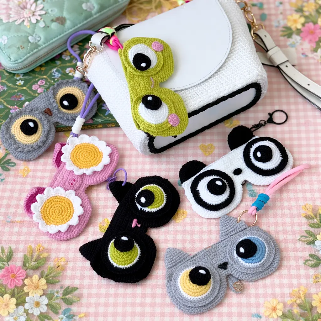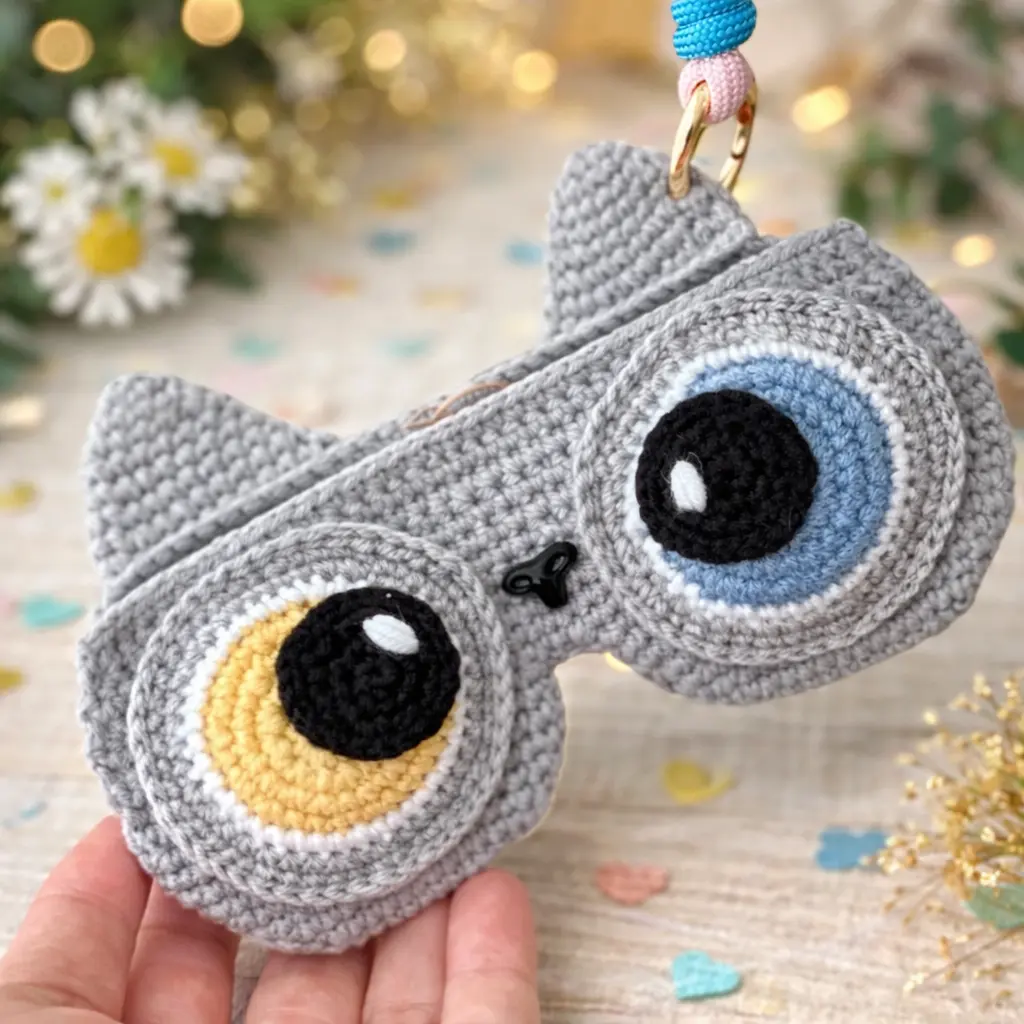 This handmade crochet glasses case is a charming eyeglasses holder. It features adorable Amigurumi designs like Pigeon, Crab, and Koala. Perfect for keeping your glasses safe and stylish.