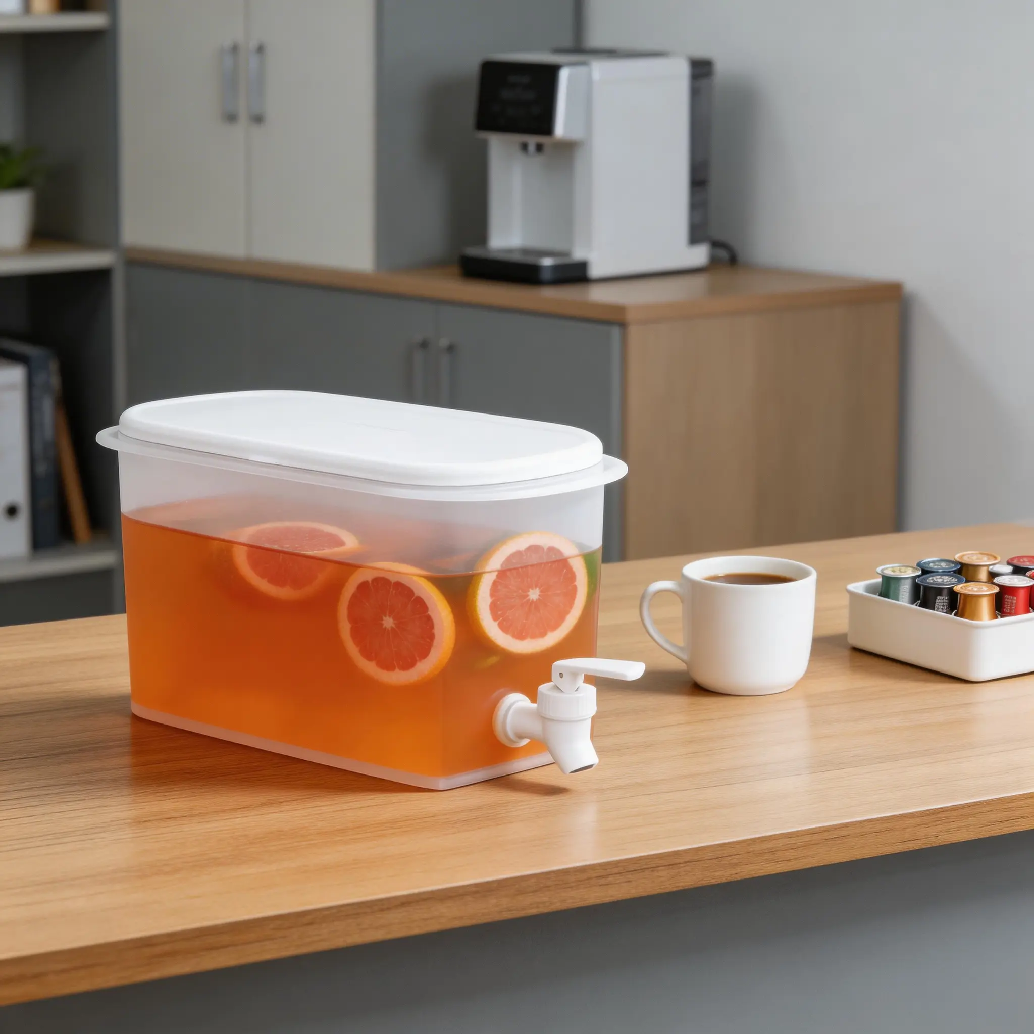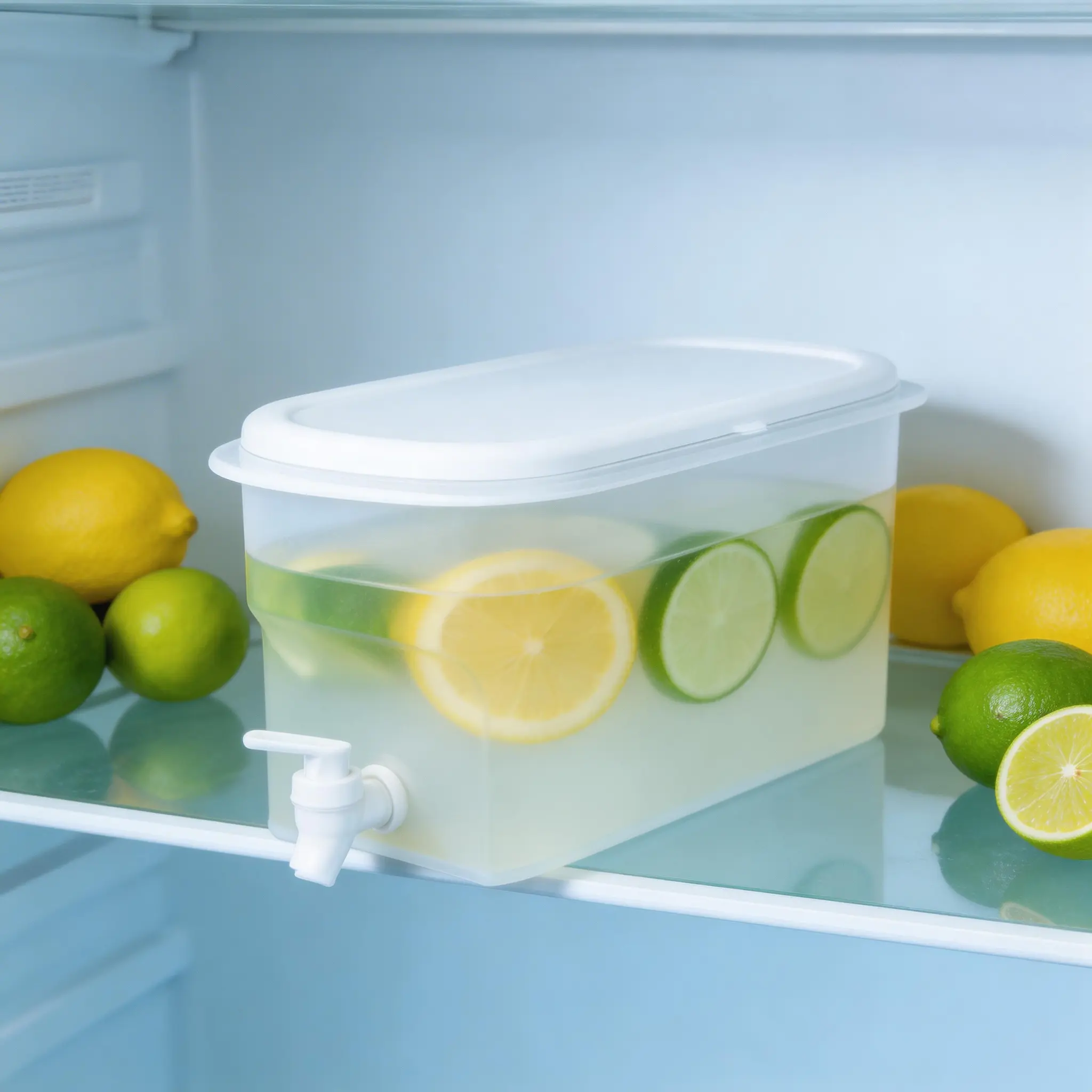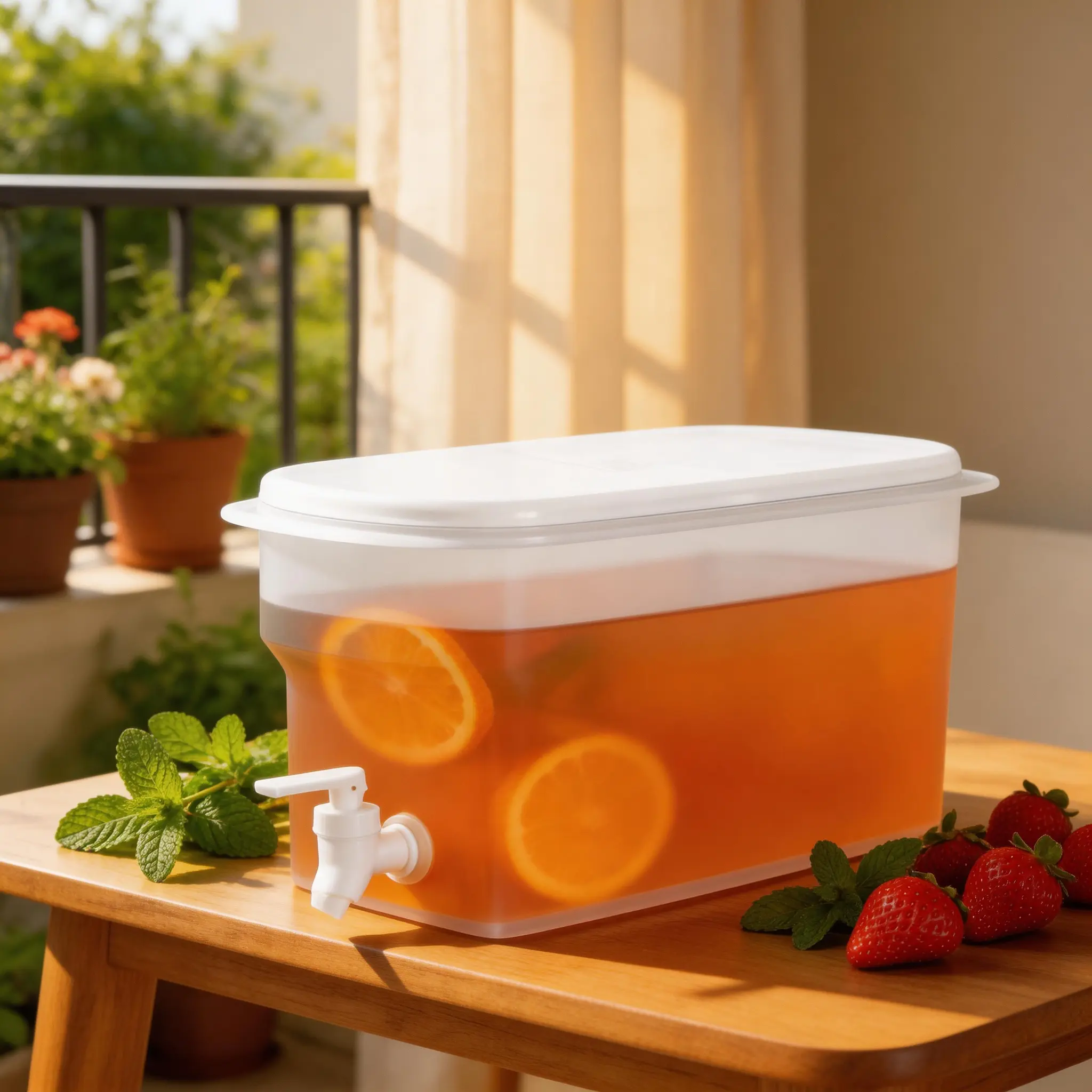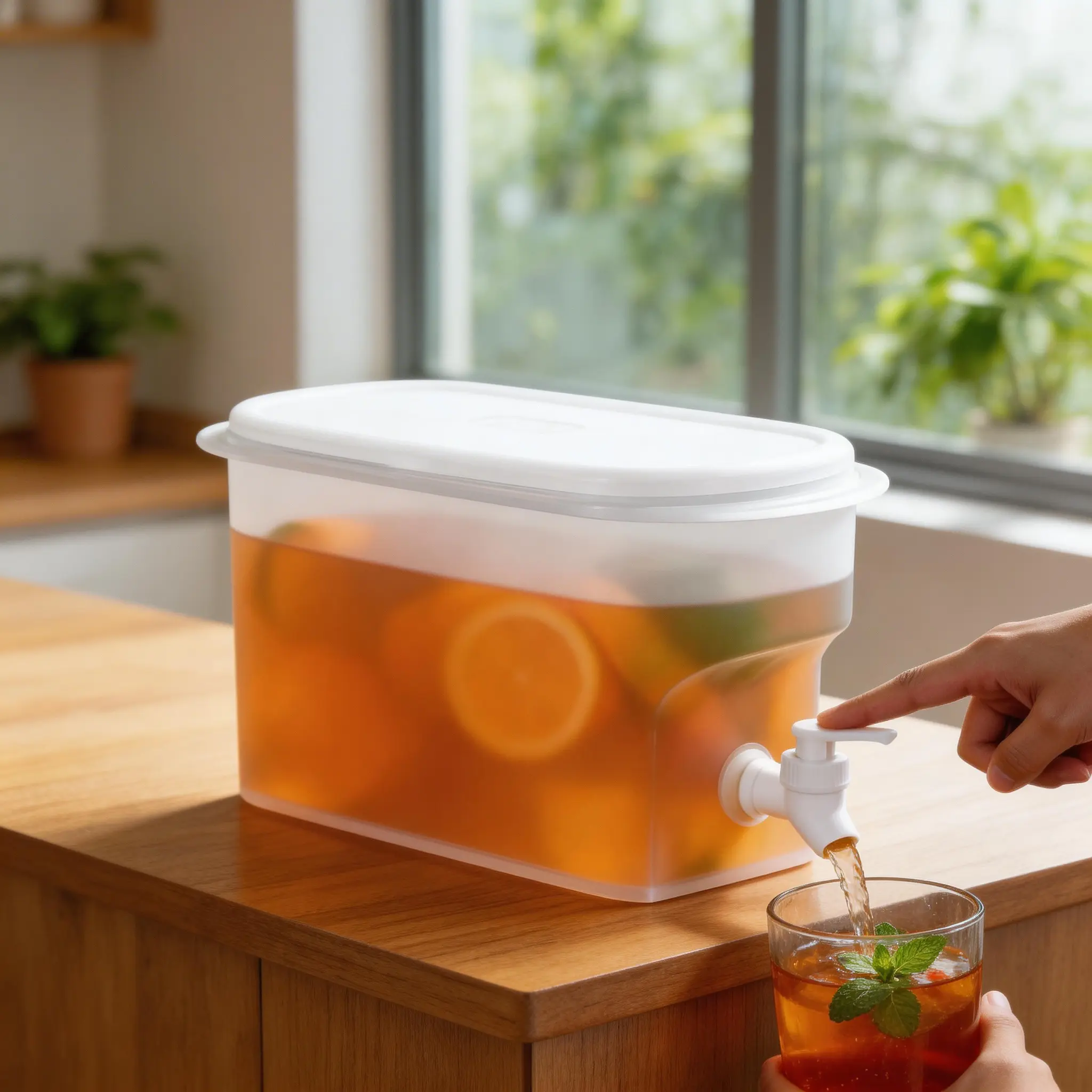 The large-capacity design makes it perfect for storing juice, iced tea, lemonade, or fruit-infused water. Its compact rectangular shape fits neatly inside most refrigerators, helping you save space while keeping drinks fresh and ready to serve.