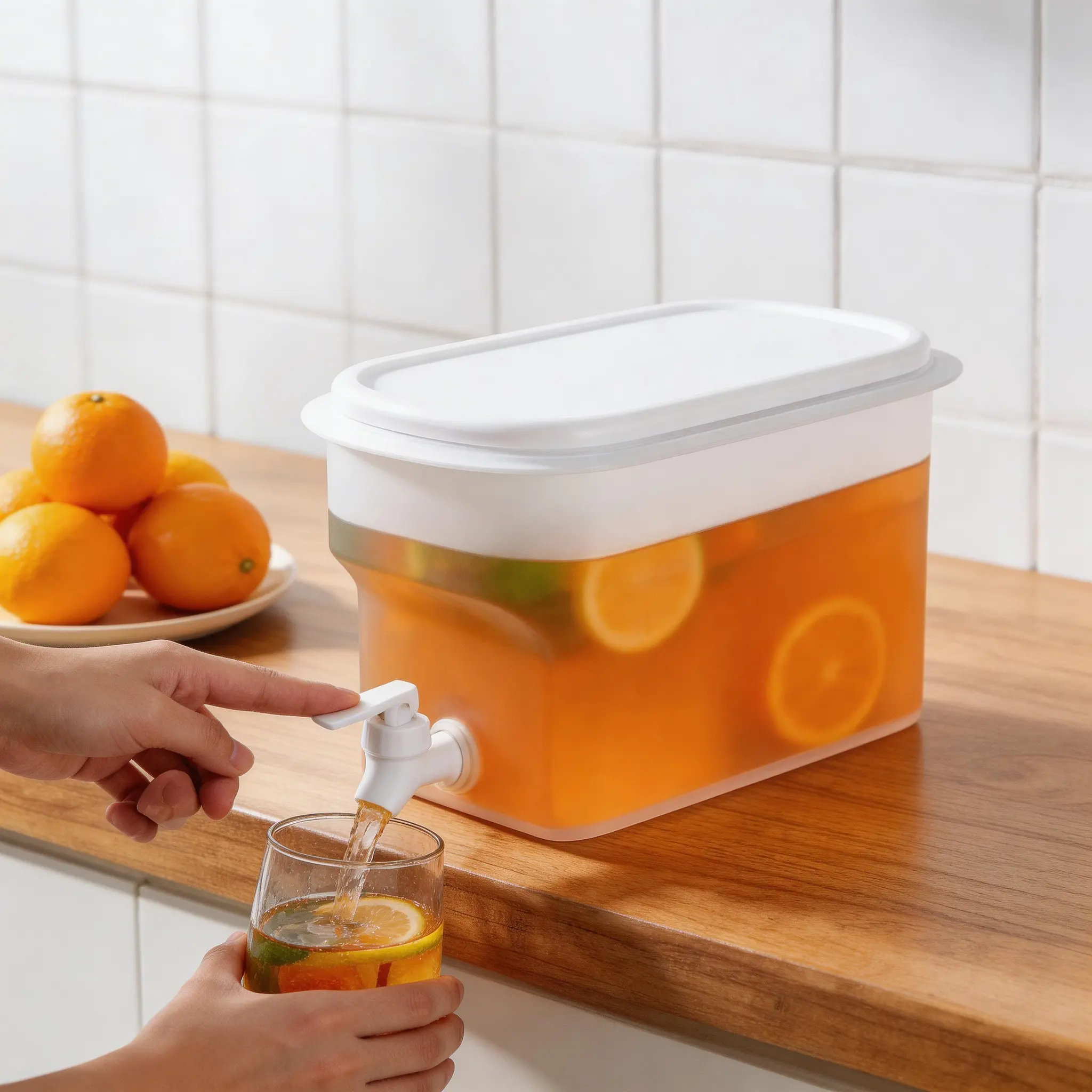 Upgrade your kitchen and fridge organization with this cold beverage dispenser. Featuring a built-in faucet, this container allows you to pour drinks easily without lifting or spilling. Simply press the tap and enjoy a smooth flow every time.