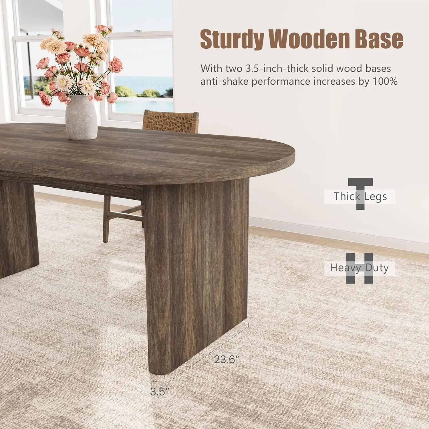 · 1. Rustic Farmhouse Style: Smooth oval tabletop paired with two sturdy rounded-rectangle legs creates a timeless, approachable look. Perfect for family meals in the kitchen or entertaining guests in the living room—adding charm and stability to any space.