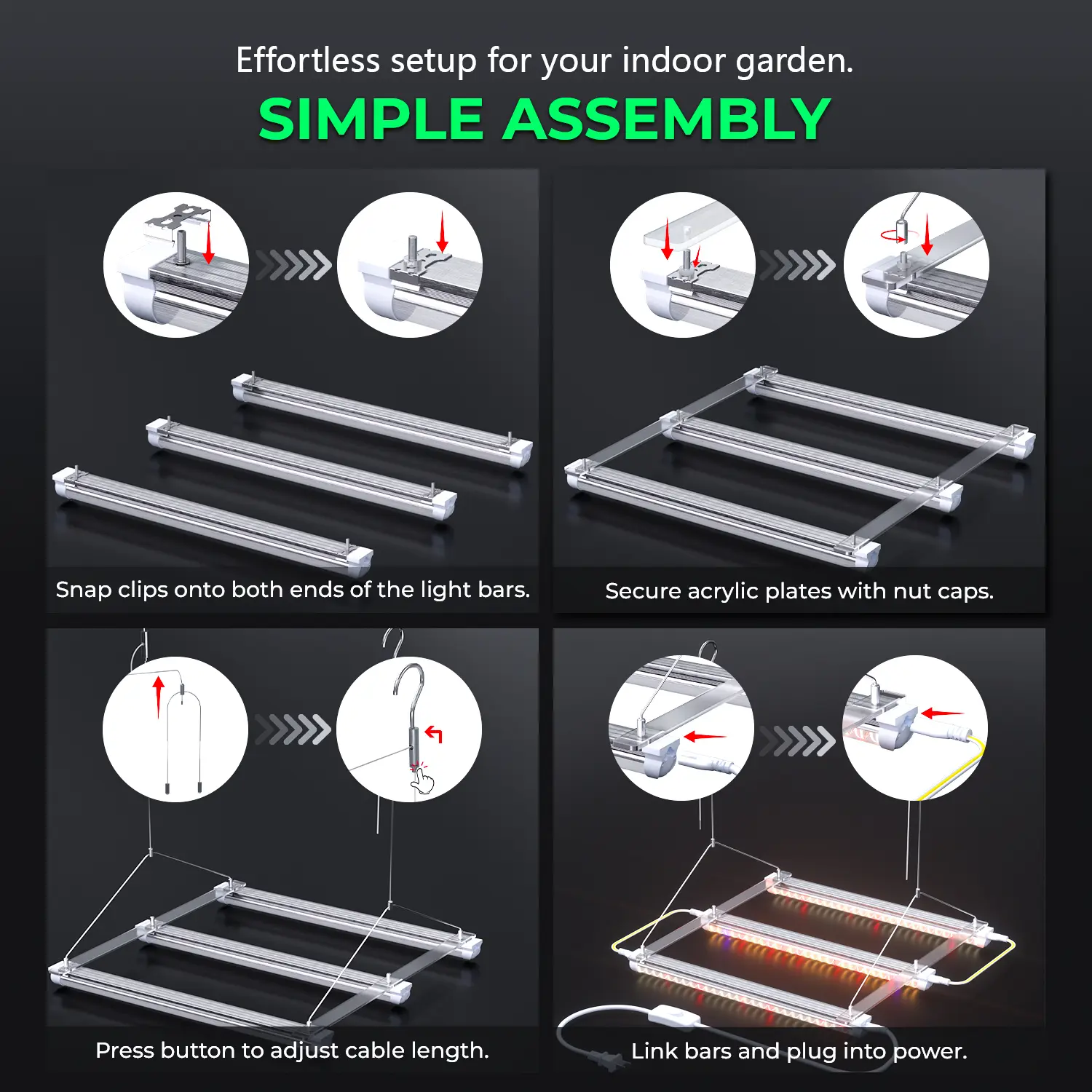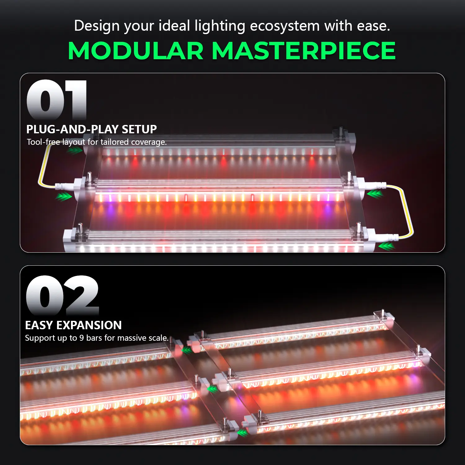 Daisy-Chain Ready: Connect up to 9 bars (3 complete kits) from a single outlet—perfect for large-scale propagation racks or grow tents.