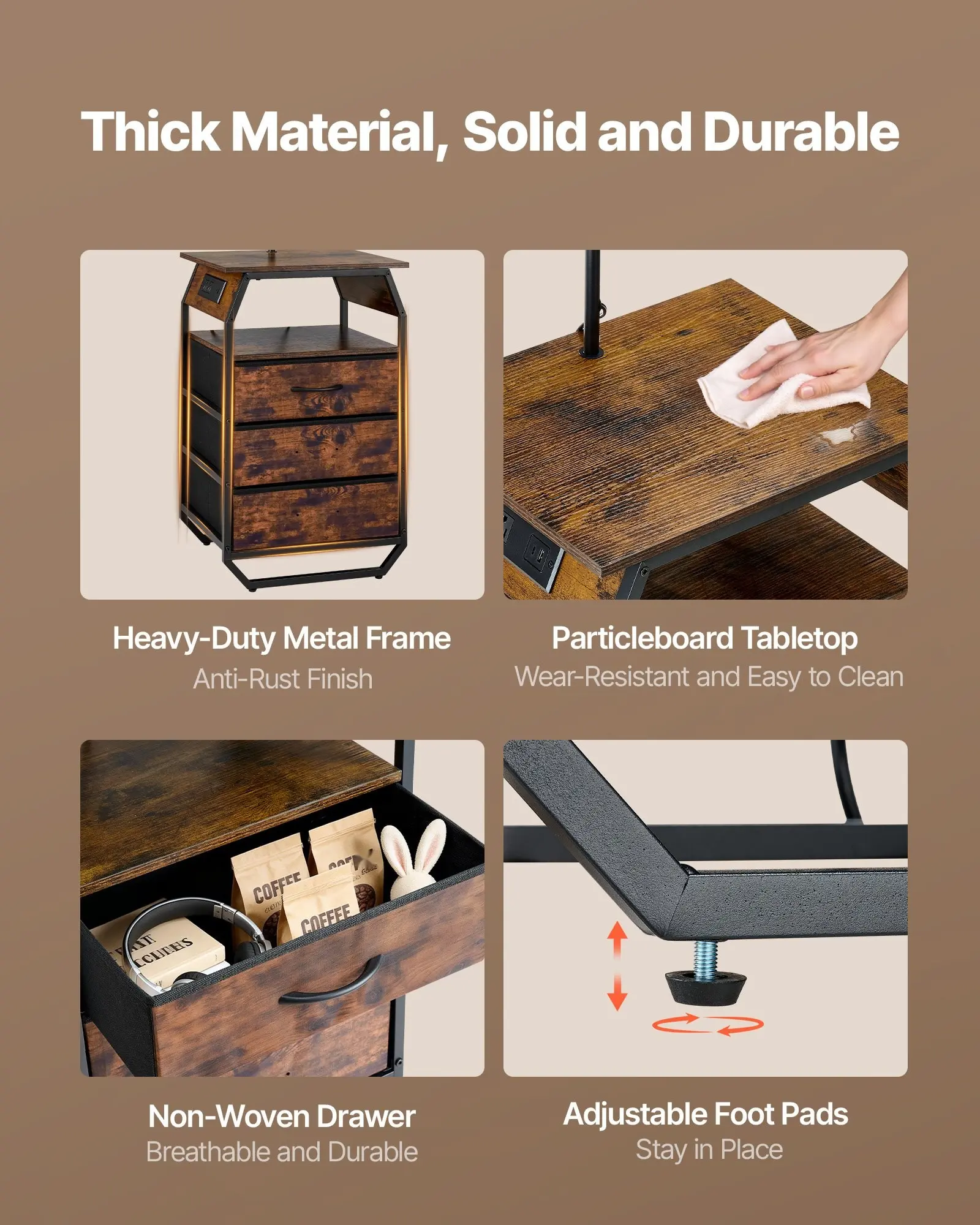 ·Easy to Assemble: Featuring a solid metal frame and particleboard tabletop, this table with lamp is built to last. Adjustable foot pads keep it stable on uneven floors. Complete hardware and clear instructions ensure quick, accurate assembly
