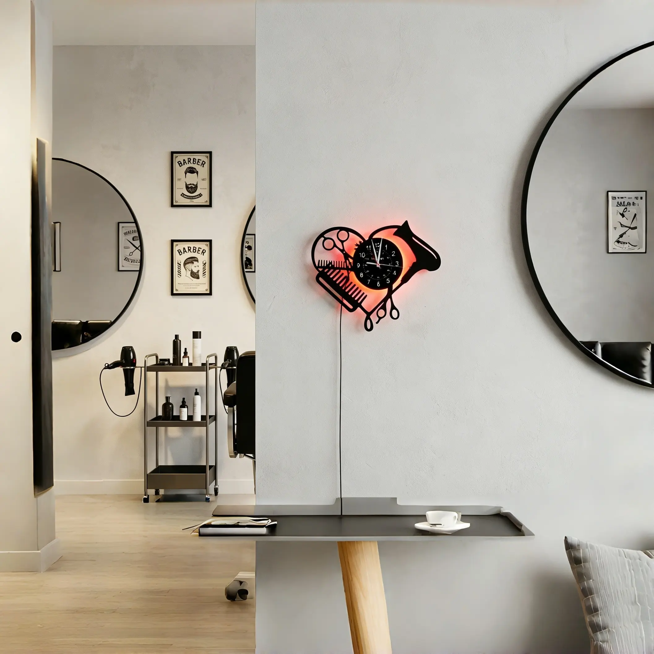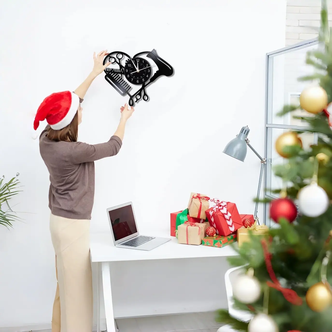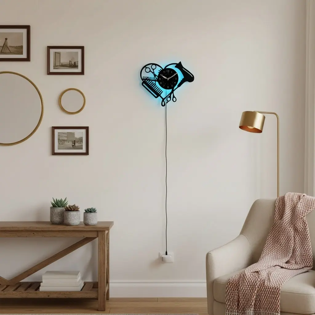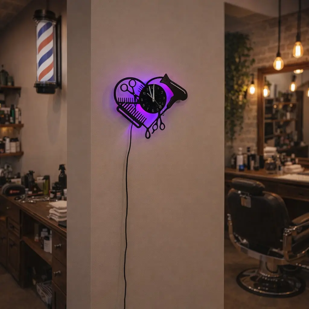 Hairdressing-Themed Vinyl Wall Clock, Home Wall Decoration, Halloween Party Gift, Barbershop Salon Decor, Birthday Graduation Present