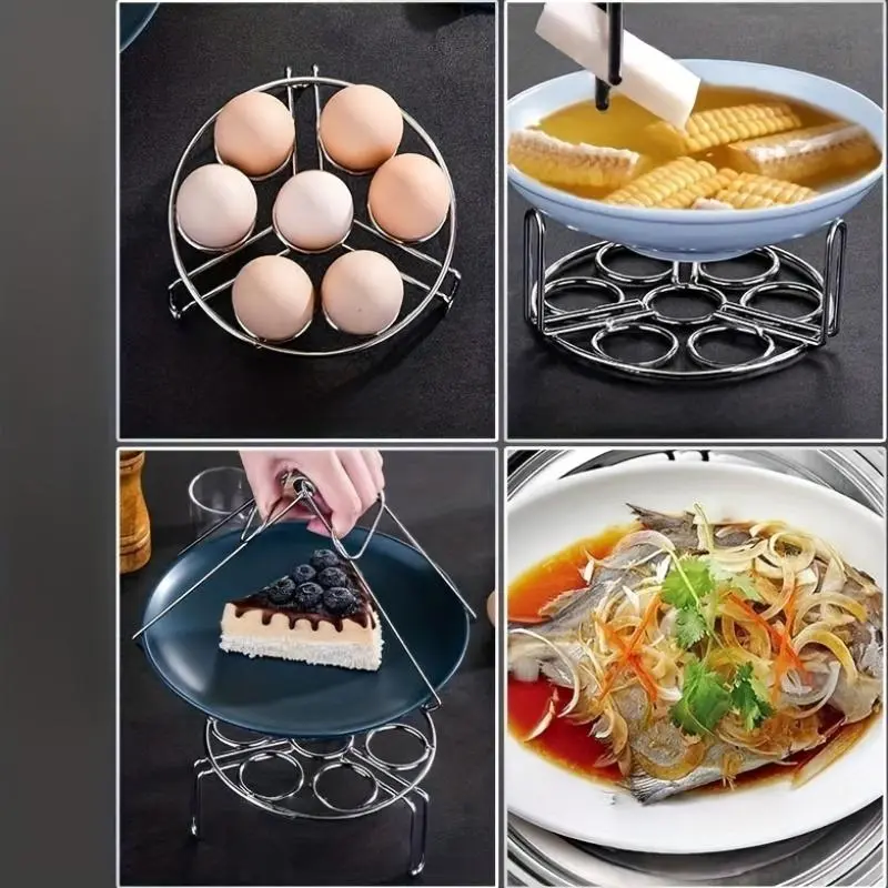 Thickened And Reinforced Stainless Steel Steaming Rack, Multifunctional Adjustable Height Steaming Frame, Extra Thick Stainless Steel Pot Rack, Heat-Resistant Steaming Mat, And Storage Solution for Cookware