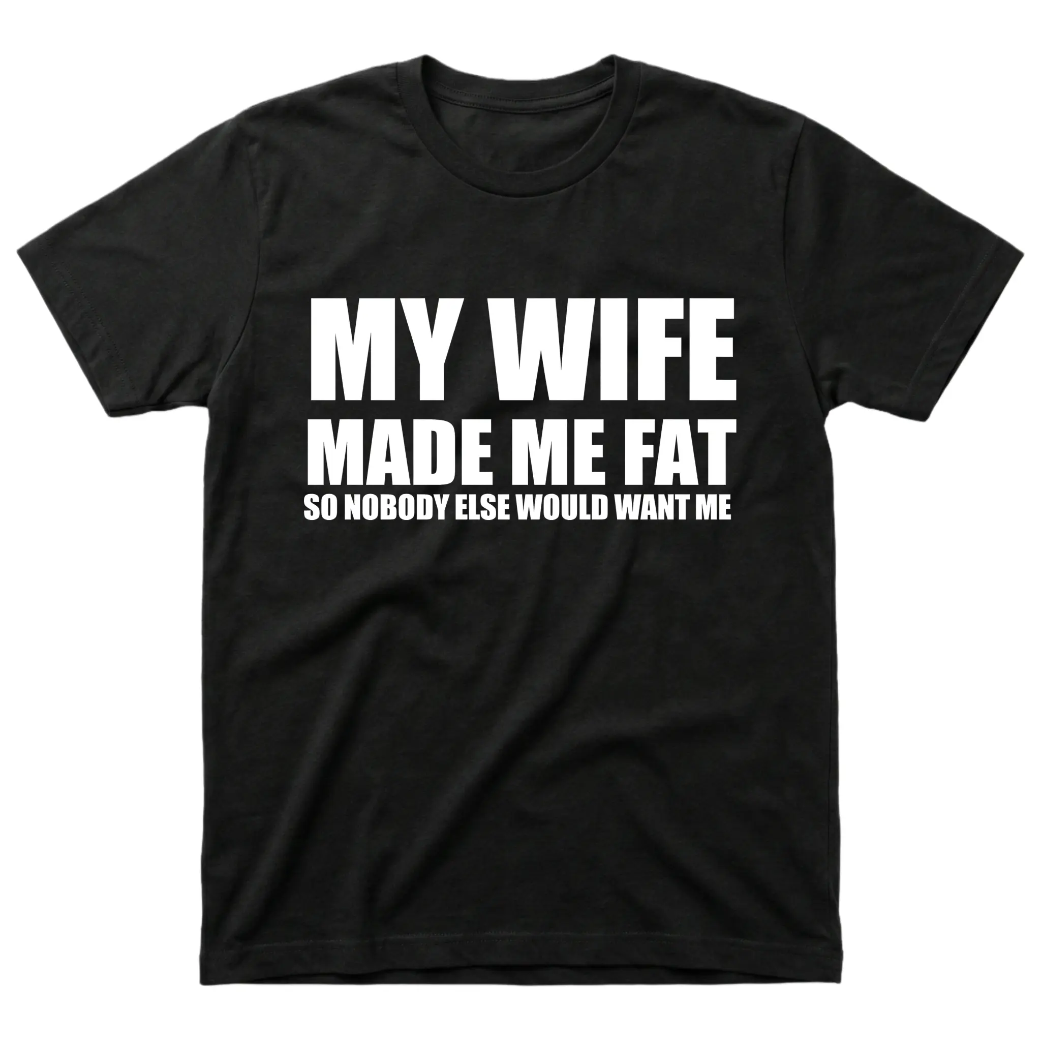 Title: Funny My Wife Made Me Fat Men's Acid Wash T-Shirt Vintage Distressed Graphic Tee Sarcastic Husband Gift Retro Streetwear Cotton Short Sleeve Top Gag Humor Shirt for Dad Couples Oversized Casual Tee