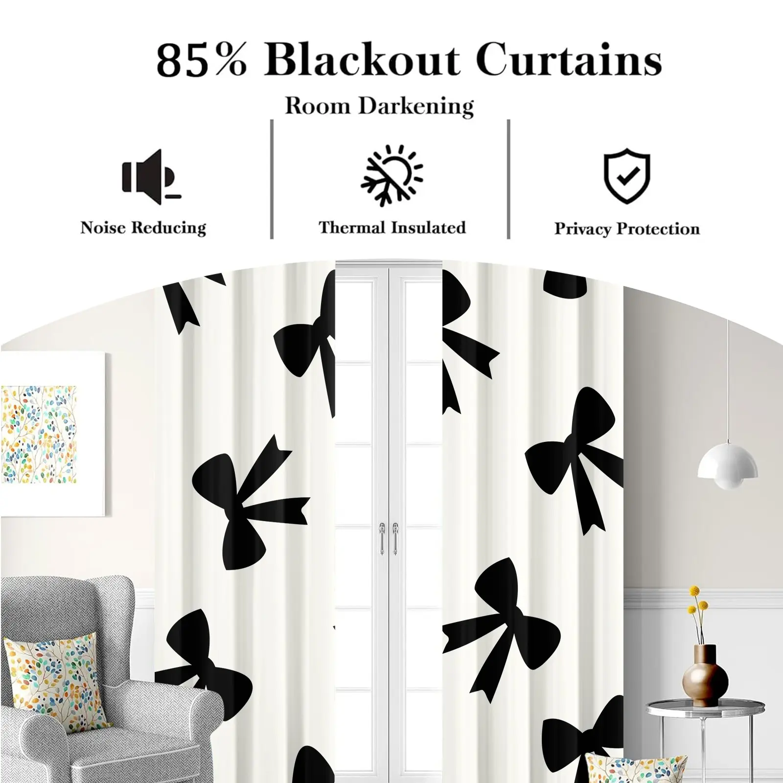 【Bow Pattern】: Featuring a unique bow print, these curtains add a playful and charming touch to any room.