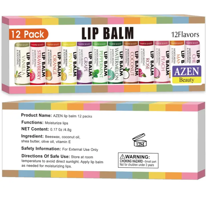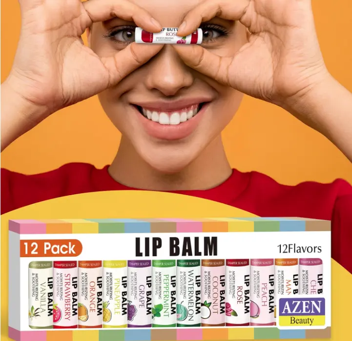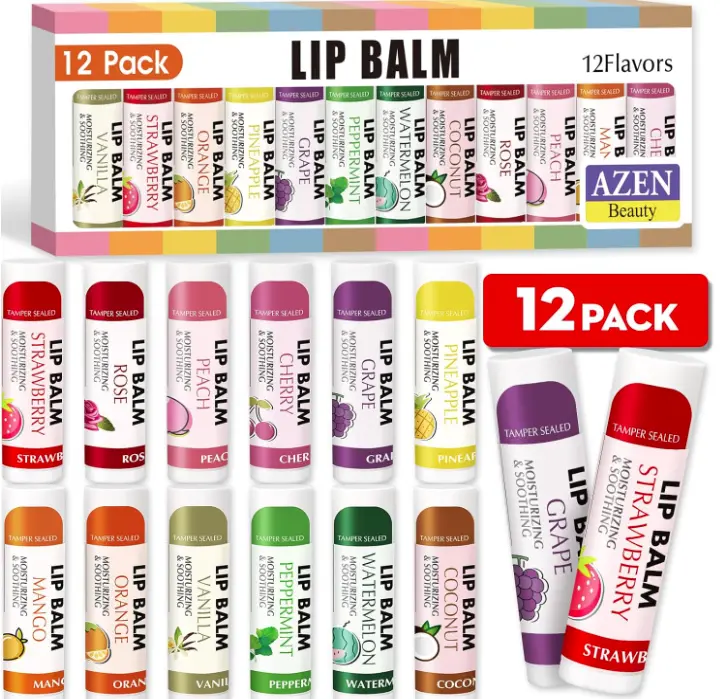 ·Flavored Lip Balm: 12 Flavors - Strawberry, Watermelon, Mango, Coconut,Pineapple, Rose, Vanilla, Cherry, Mint, Grape, Peach, Orange