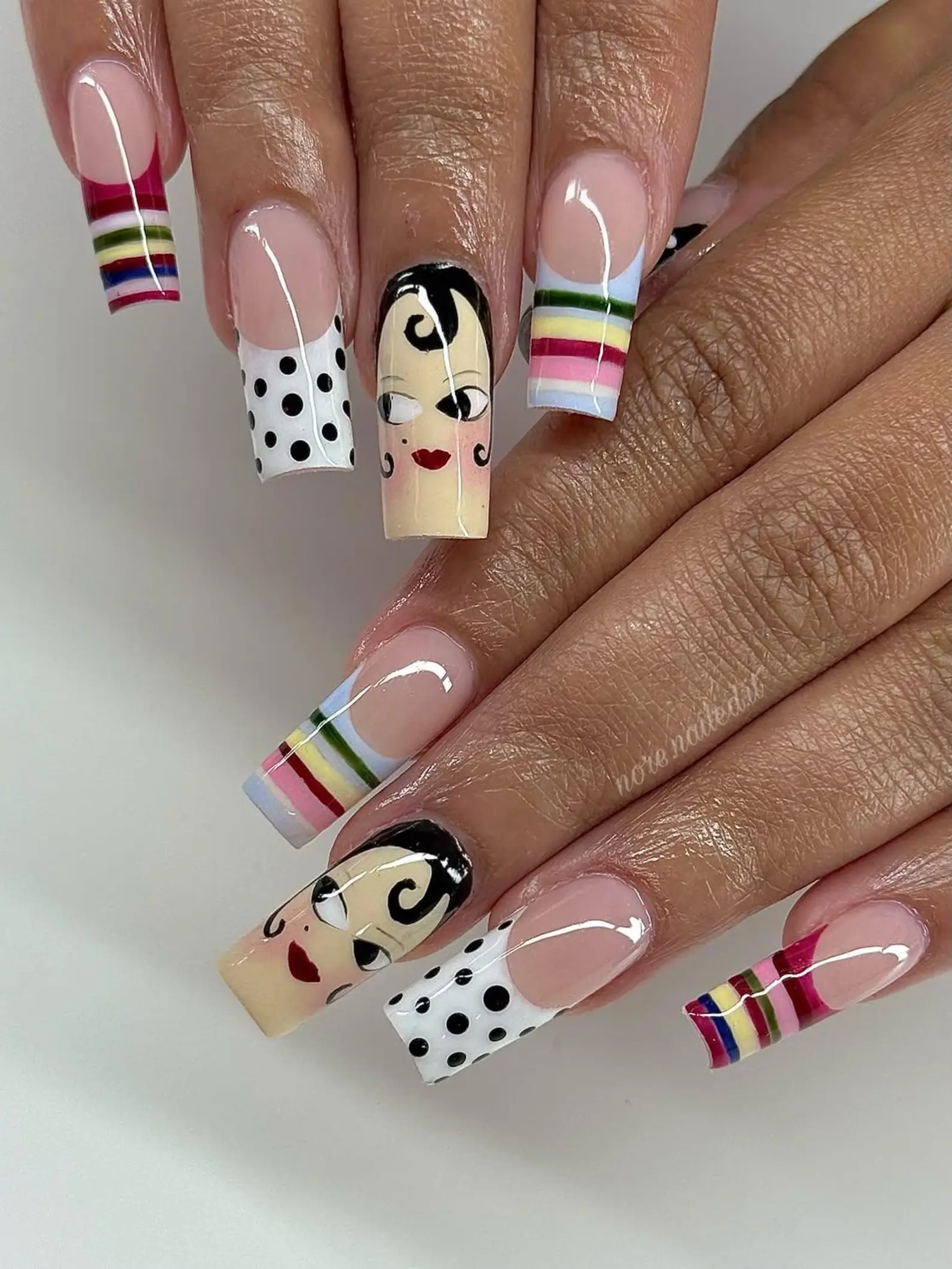 Female Alchemy Inspired Press On Nails, Retro Polka Dots | Multi Color Striped Tips, Funky Maximalist Fake Nails, Unique Custom Gel Nails