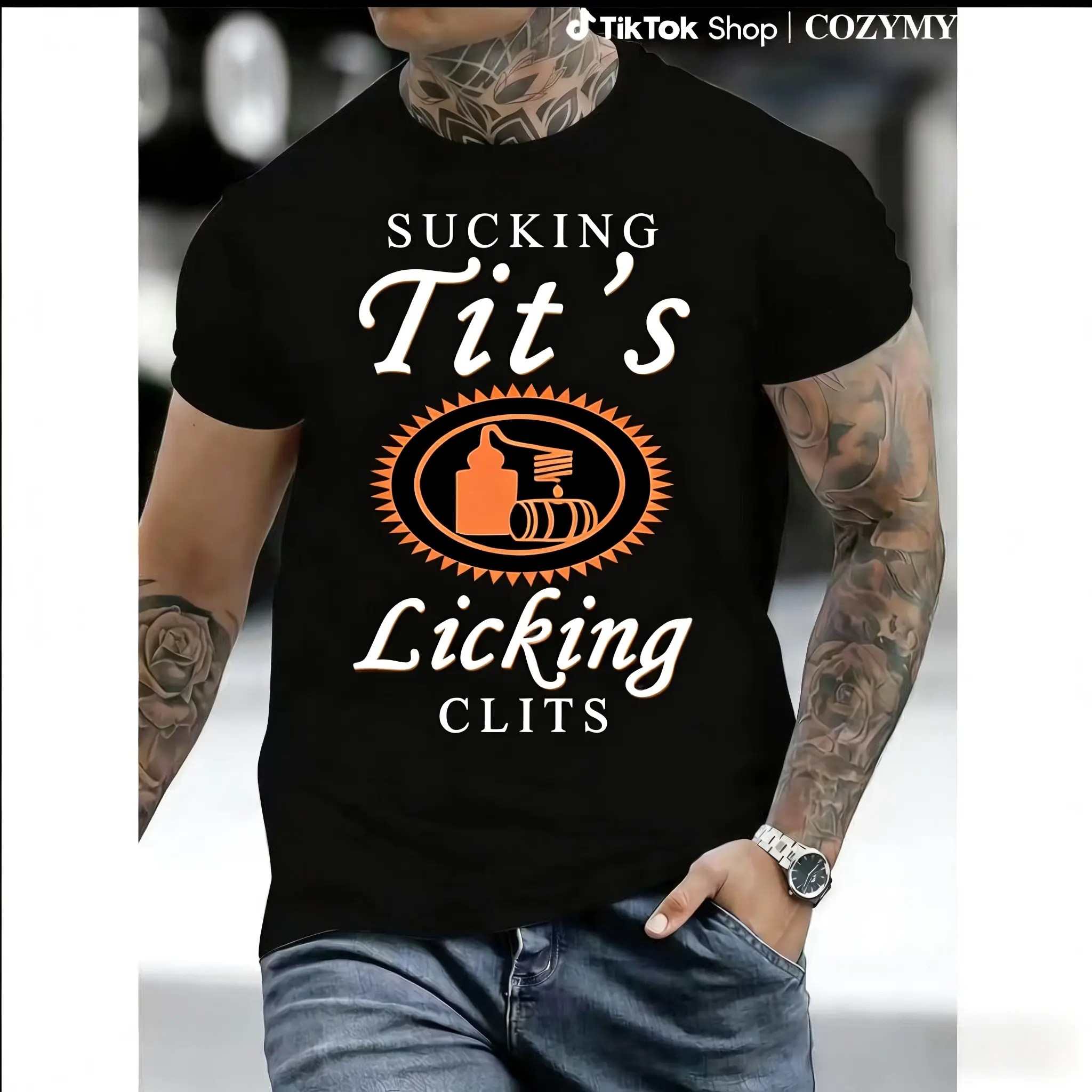 Trek Gear Lab T-Shirt Sucking T and Licking C Funny Tito Drinking Humor Party T-Shirt, Tito Logo Party Vibes Design Graphic 2 Side Shirt, Unisex Cotton for Men and Women Menswear Top Fabric